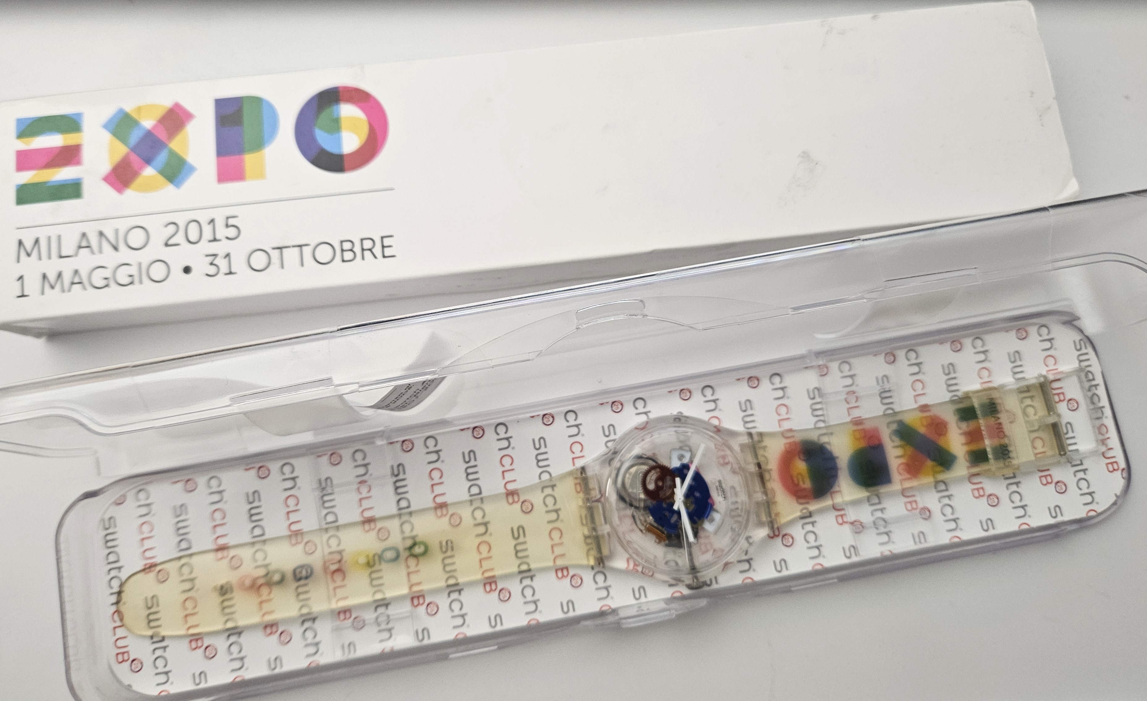 Swatch Standards 2015 - SUOK111N - Expo Ghost - (Expo Milano 2015) - Nuovo - perfettamente funzionante nella sua custodia originale - Display Analogico - Resistente all'acqua fino a 3 Bar - diametro cassa 41 mm -