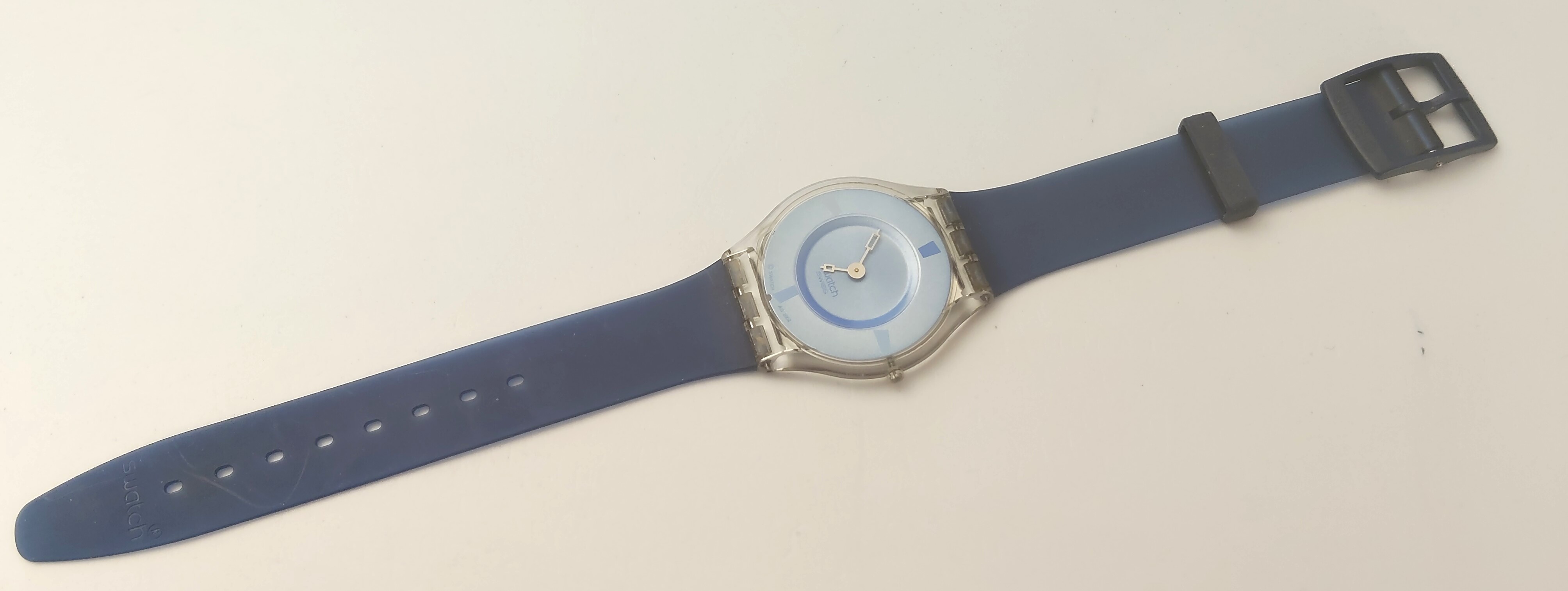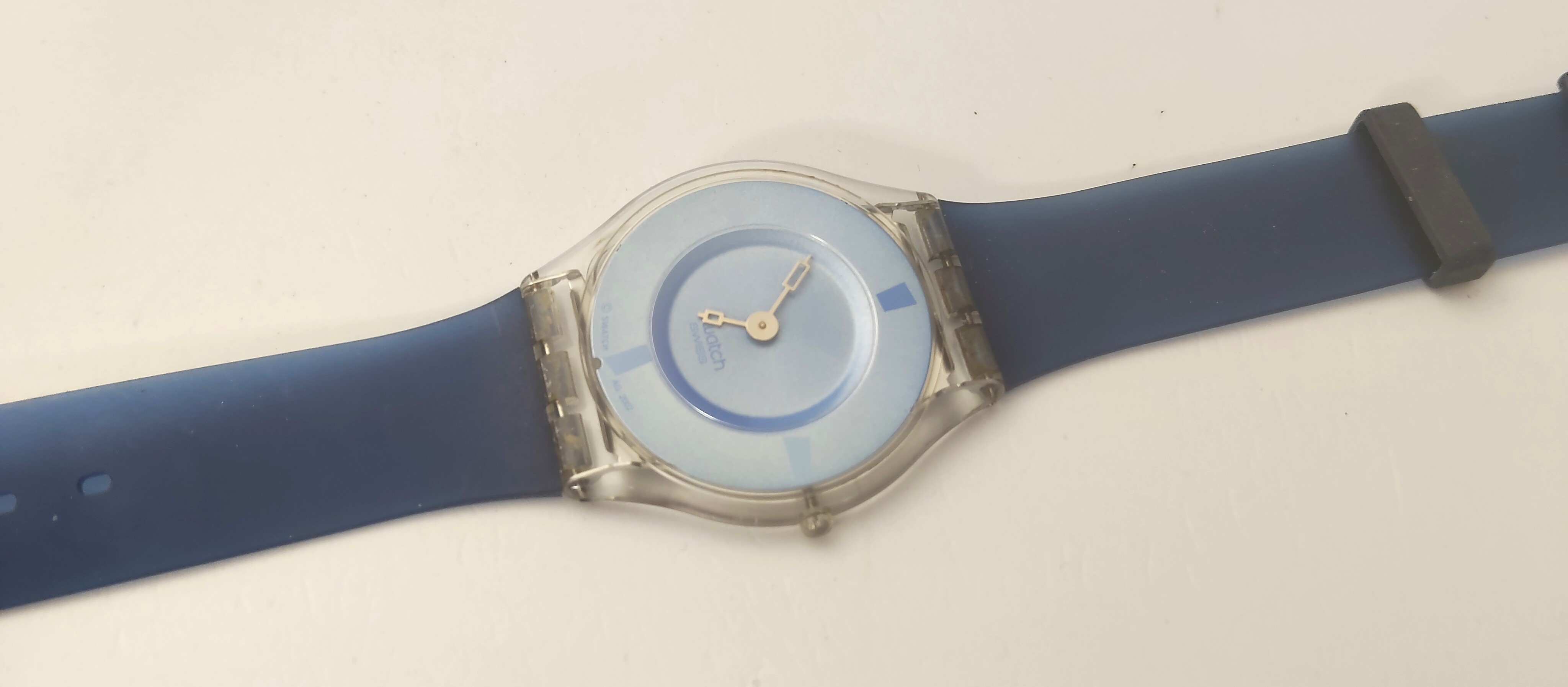 Swatch Skin 2003 - SFK170 - Bludablu - Leggermente usato - perfettamente funzionante senza la sua custodia originale - Display Analogico - Resistente all'acqua fino a 3 Bar - Tipo di movimento Quarzo Svizzero - cinturino in plastica nuovo -