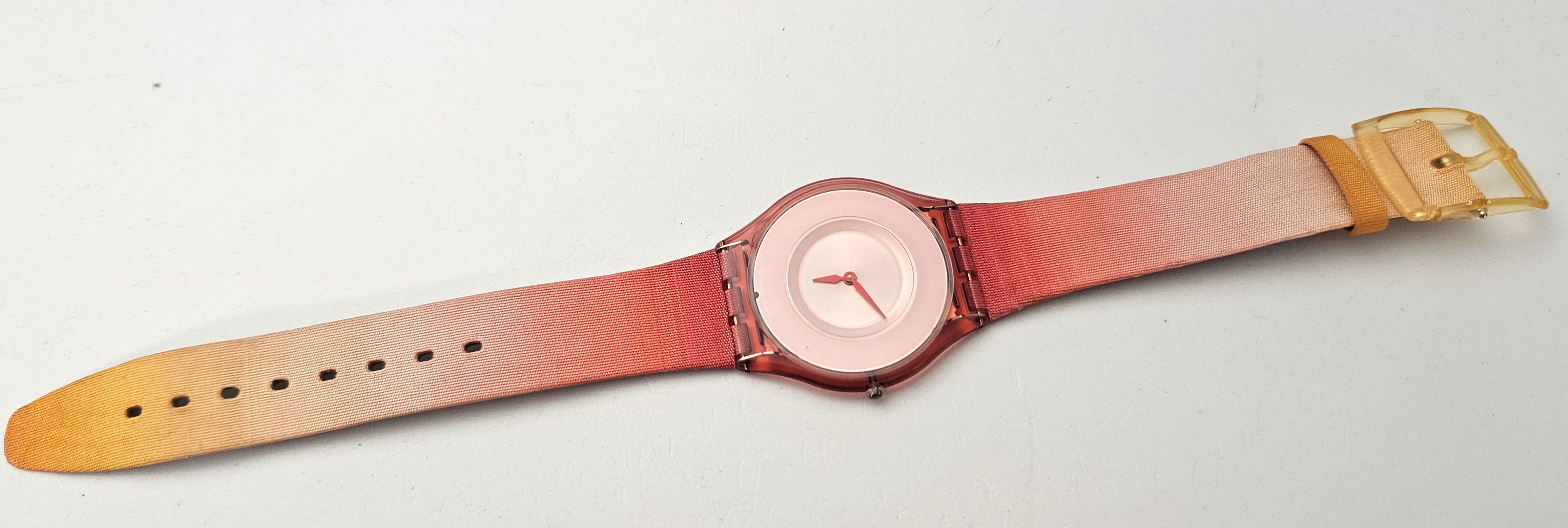Swatch Skin - SFK148 - Rosso di sera - Leggermente usato - perfettamente funzionante senza la sua custodia originale - Display Analogico - Resistente all'acqua fino a 3 Bar - Tipo di movimento Quarzo Svizzero - cinturino in pelle -