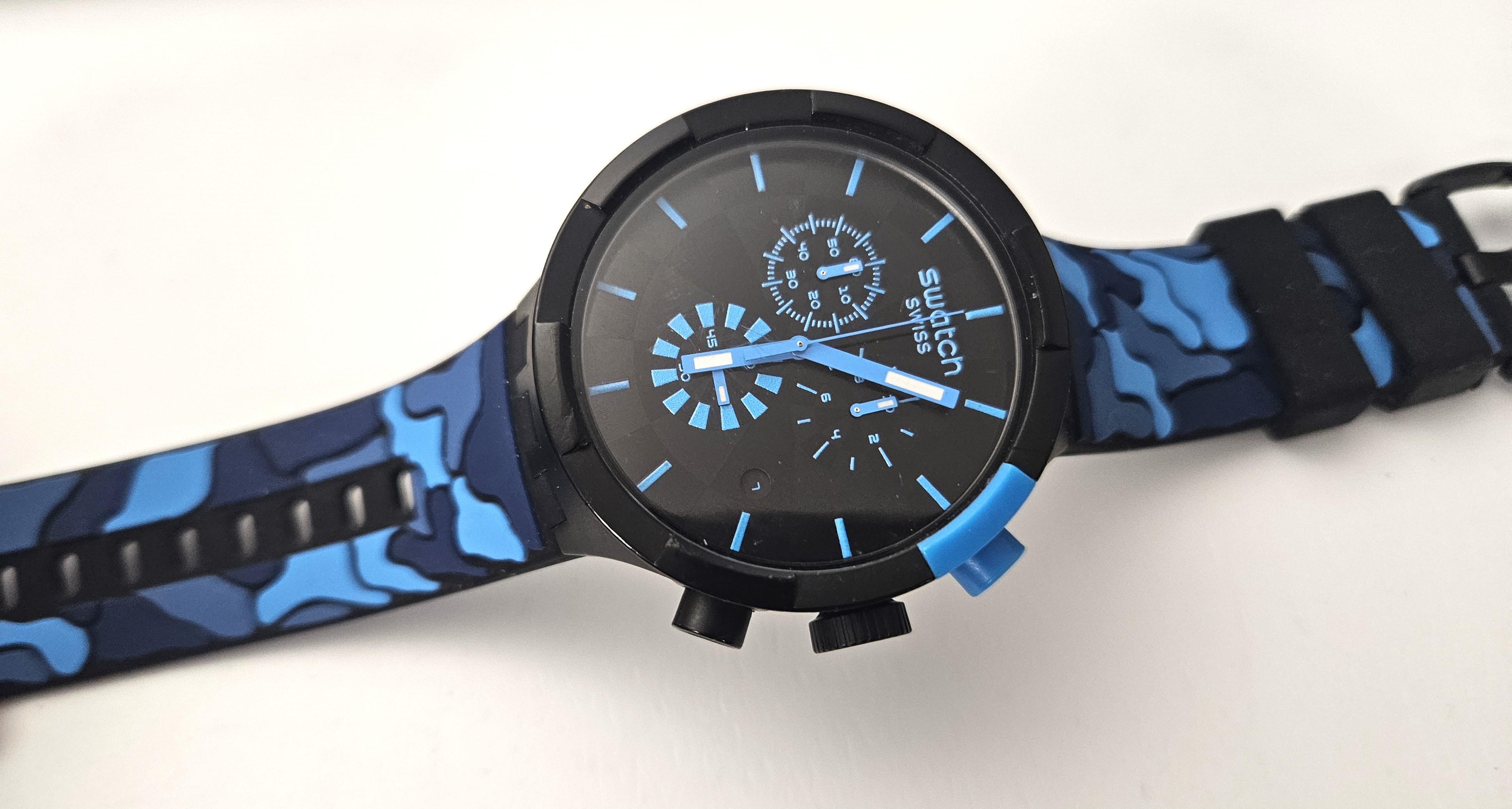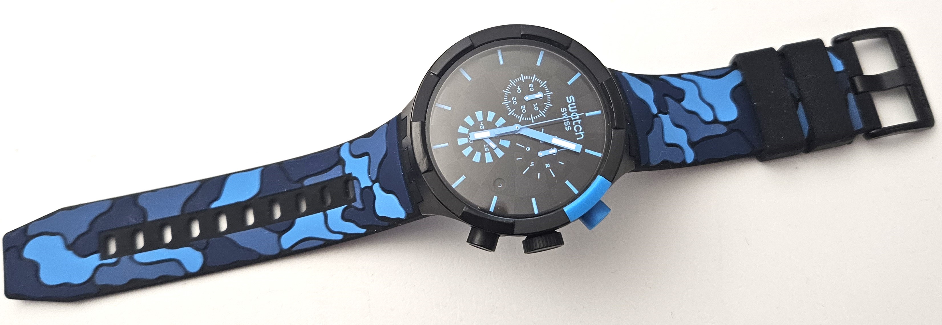 Swatch Big Bold chrono 2020 - SB02B401 - CHECKPOINT blue - Usato leggermente - perfettamente funzionante senza la sua custodia originale - funzione cronografo - cassa in plastica con cinturino in silicone - Display Analogico - Resistente all'acqua fino a 3 Bar