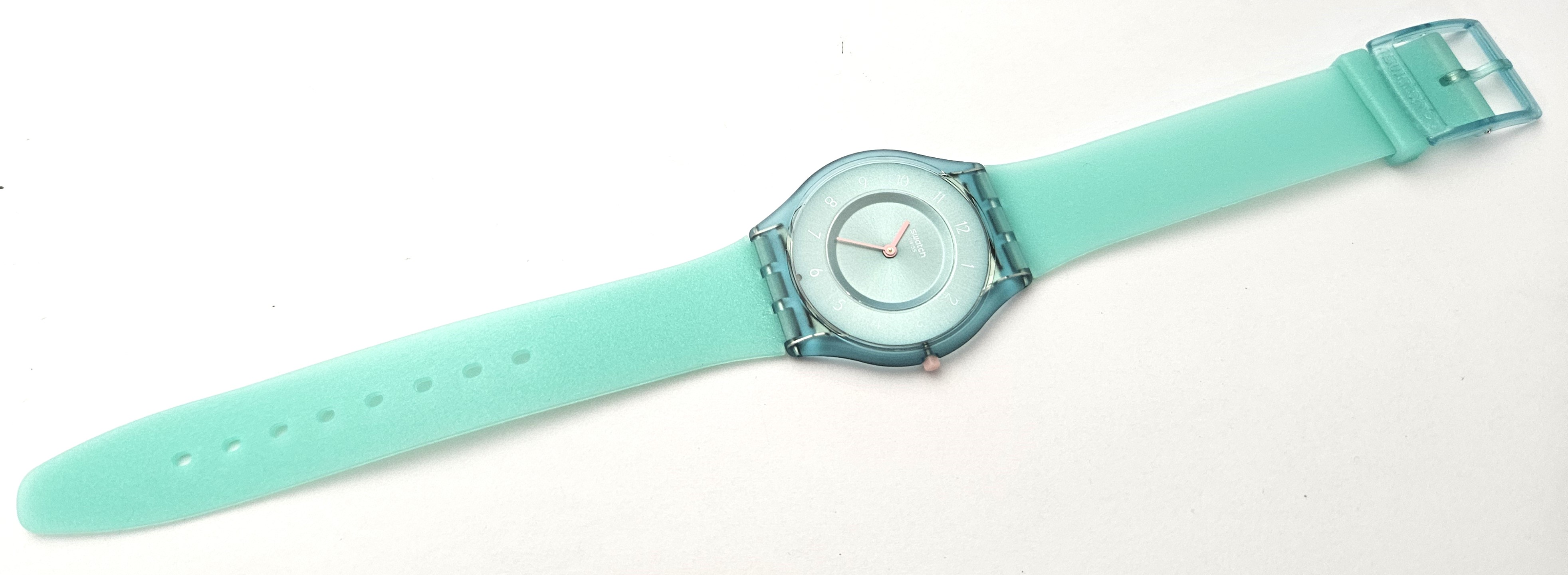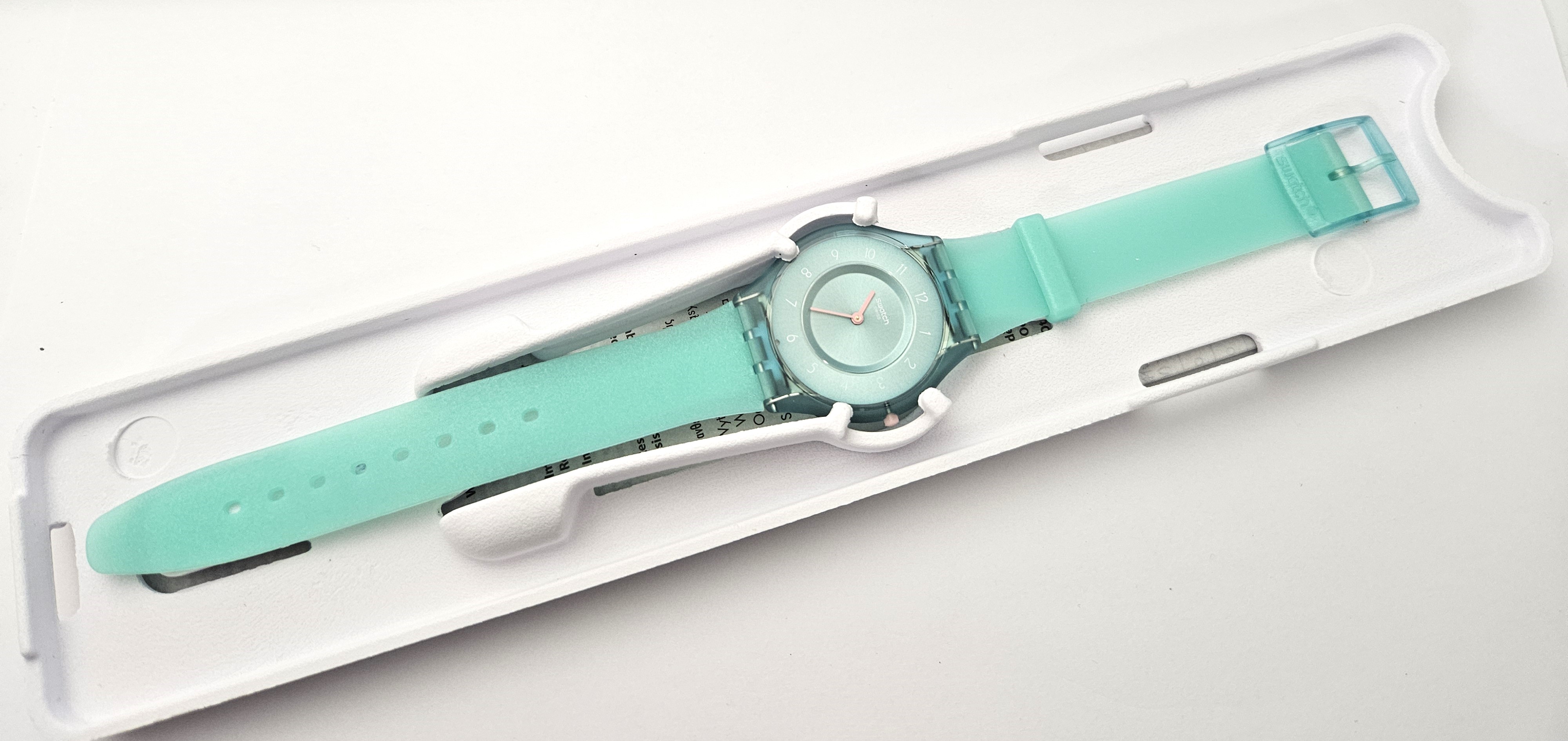 Swatch Skin 2024 - SS08L100 - Pastelicious teal - Nuovo- perfettamente funzionante - Display Analogico - Resistente all'acqua fino a 3 bar - Tipo di movimento Quarzo Svizzero - nella sua scatola originale - diametro cassa 34 mm -
