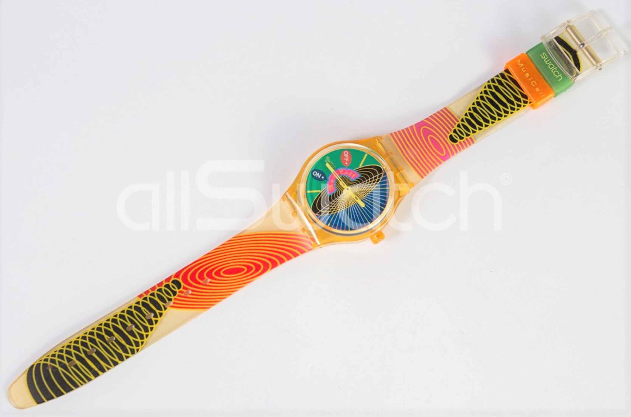 Swatch Musicall 1994 - SLJ100 - Tambour (Melody by Jean Michel Jarre e Designed by Alessandro Mendini) - NUOVO - perfettamente funzionante nella sua custodia originale - Display analogico - Resistente all'acqua fino a 3 bar - Tipo di movimento quarzo svizzero.