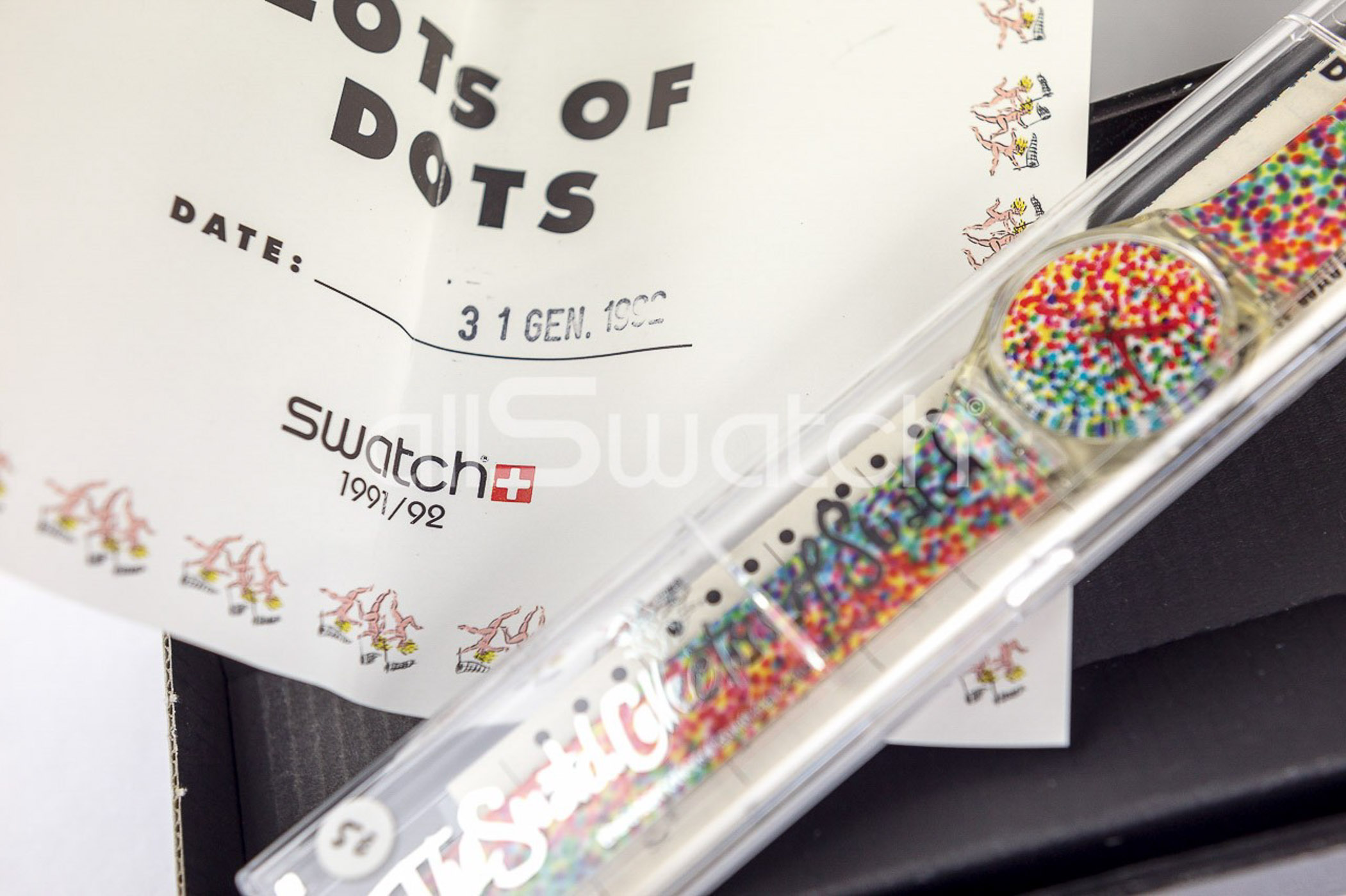 Swatch Special - 1992 - GZ121 - Lot Of Dots disegnato da Alessandro Mendini- NUOVO - perfettamente funzionante nella sua confezione originale - Resistente all'acqua fino a 3 bar - Tipo di movimento al quarzo - Display Analogico
