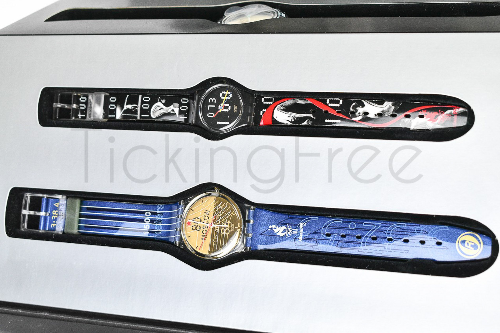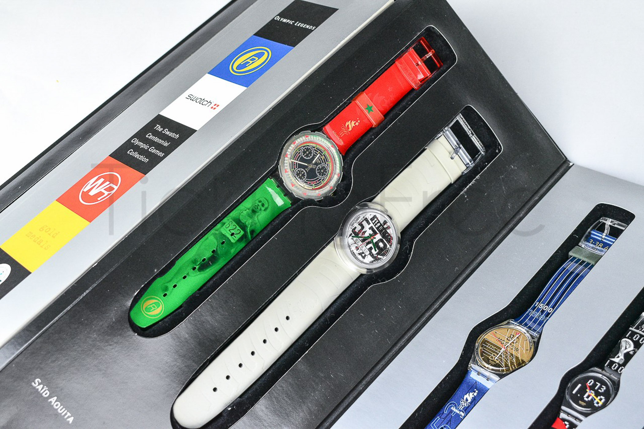 Swatch Special 1996 - BOX3PACK - ( NR. 10 OROLOGI) Box Olympic Legends - Nuovo - Limited edition 07398 / 20000 - perfettamente funzionanti con batteria nuova inserita - nella sua custodia originale - Display analogico - Resistente all'acqua fino a 3 Bar - Tipo di movimento Quarzo Svizzero