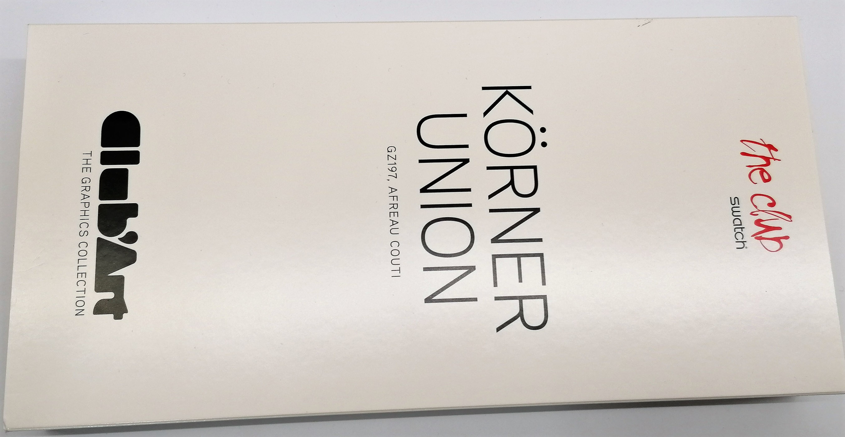 Swatch Special 2008 - GZ197 - Afreau Couti BY Korner Union- NUOVO - perfettamente funzionante nella custodia Speciale - Display analogico - Resistente all'acqua fino a 3 bar - Tipo di movimento Quarzo Svizzero - Cassa e Cinturino in Plastica - Limitazione 3333 Pezzi questo è il numero 1427 -