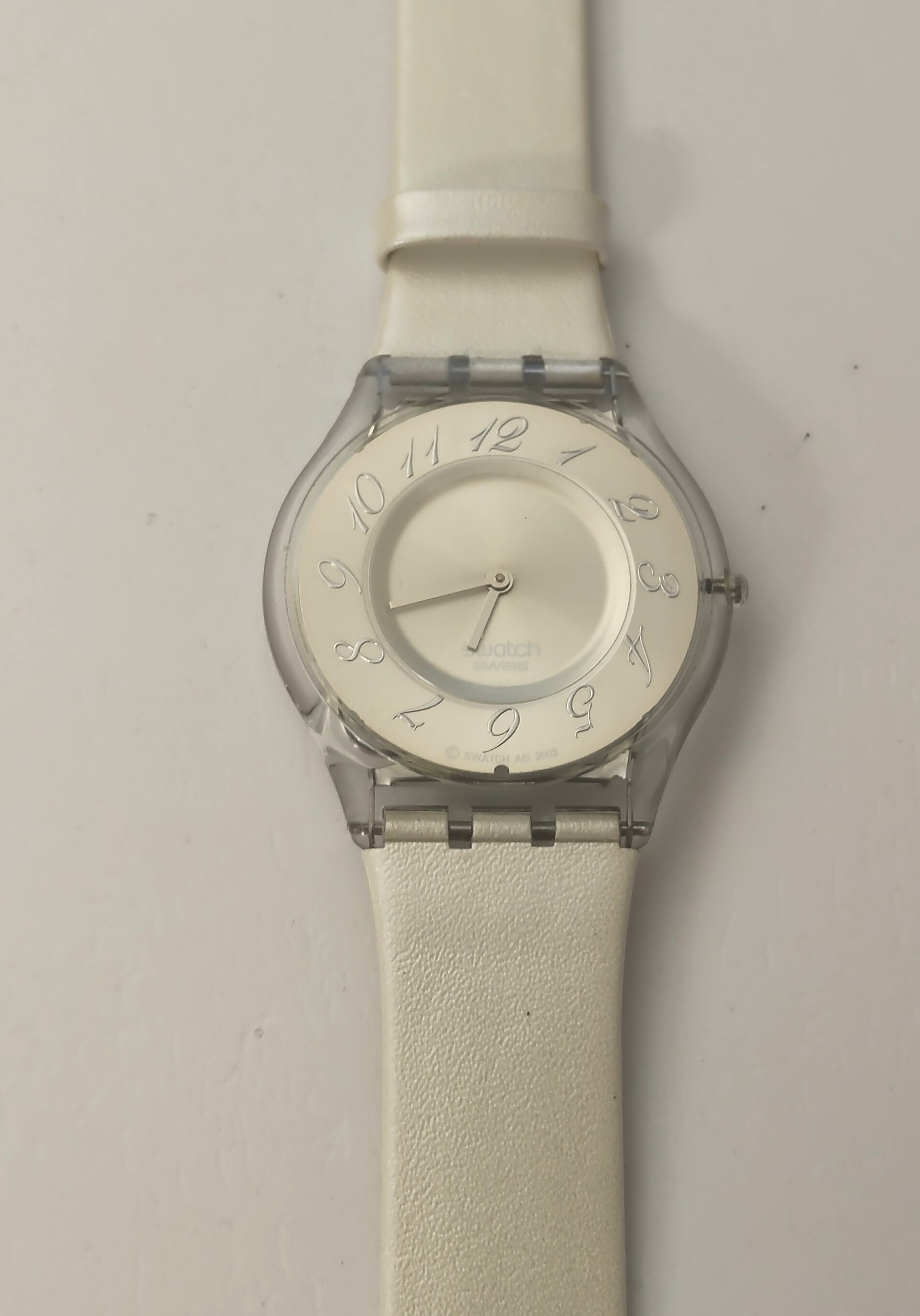 Swatch Skin - SFK199 - Panna Montata - Leggermente Usato - perfettamente funzionante SENZA custodia originale e garanzia - Display Analogico - Resistente all'acqua fino a 3 bar - Tipo di movimento Quarzo Svizzero- CINTURINO IN PELLE NUOVO -