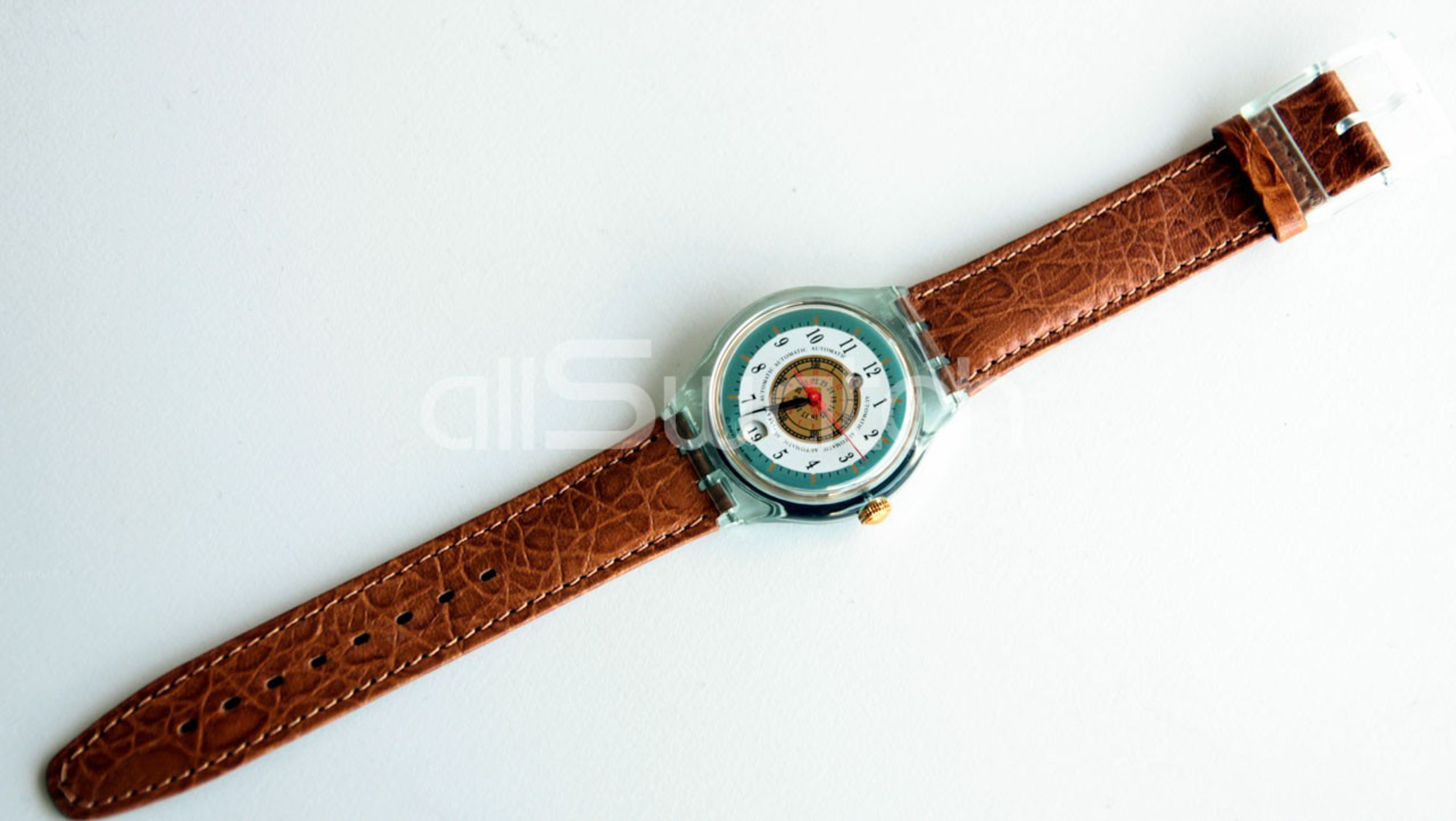 Swatch Automatico 1995 - SAG401 - Midsommar Sol - NUOVO - perfettamente funzionante nella sua custodia originale - Display Analogico - Resistente all'acqua fino a 3 bar - Tipo di movimento automatico - Cassa in Plastica e cinturino in pelle -