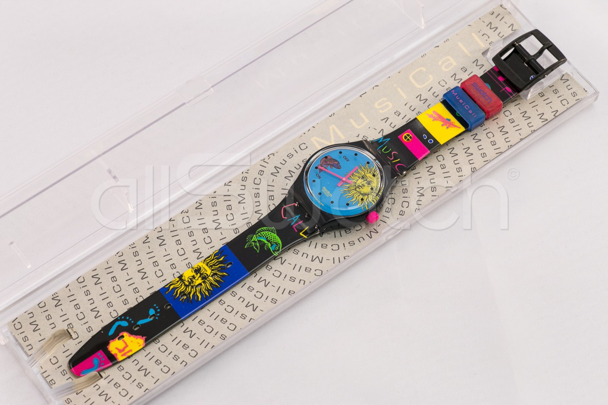 Swatch Musicall 1993 - SLB101- Europe In Concert - NUOVO - perfettamente funzionante nella sua custodia originale - Display Analogico - Resistente all'acqua fino a 3 bar - Tipo di movimento quarzo svizzero - Funzione Allarme - perfetto da collezionare ma poco indicato ad essere utilizzato perchè il cinturino è molto delicato -