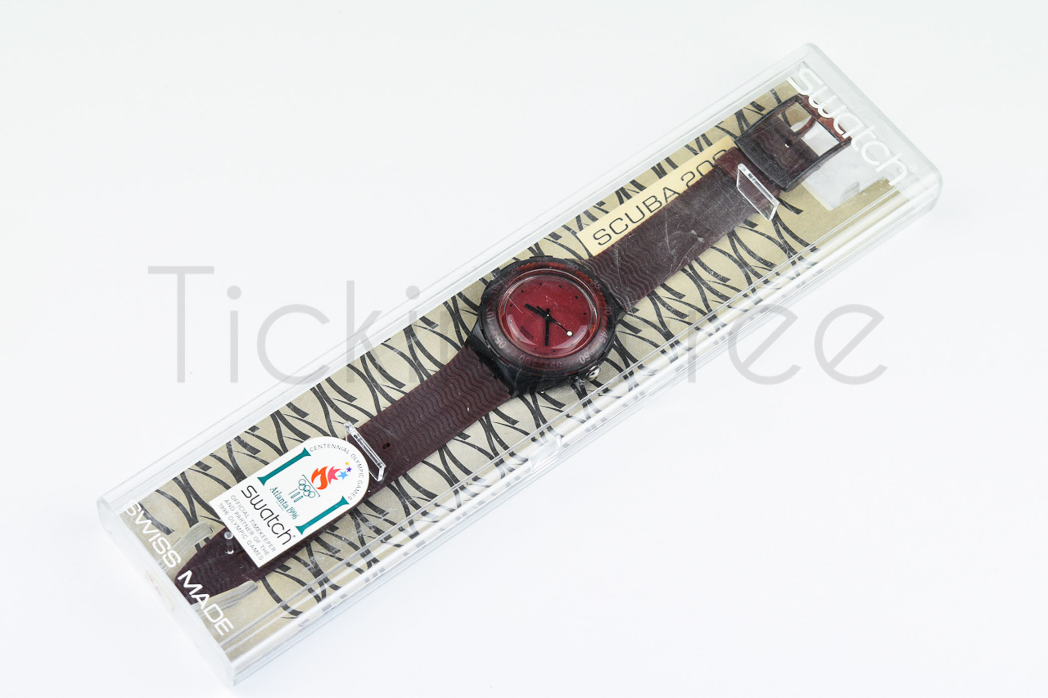 Swatch Scuba 1996 - SDR100 - Red Wood- Nuovo - perfettamente funzionante nella sua custodia originale - Display analogico - Resistente all'acqua fino a 20 Bar - Tipo di movimento quarzo svizzero.
