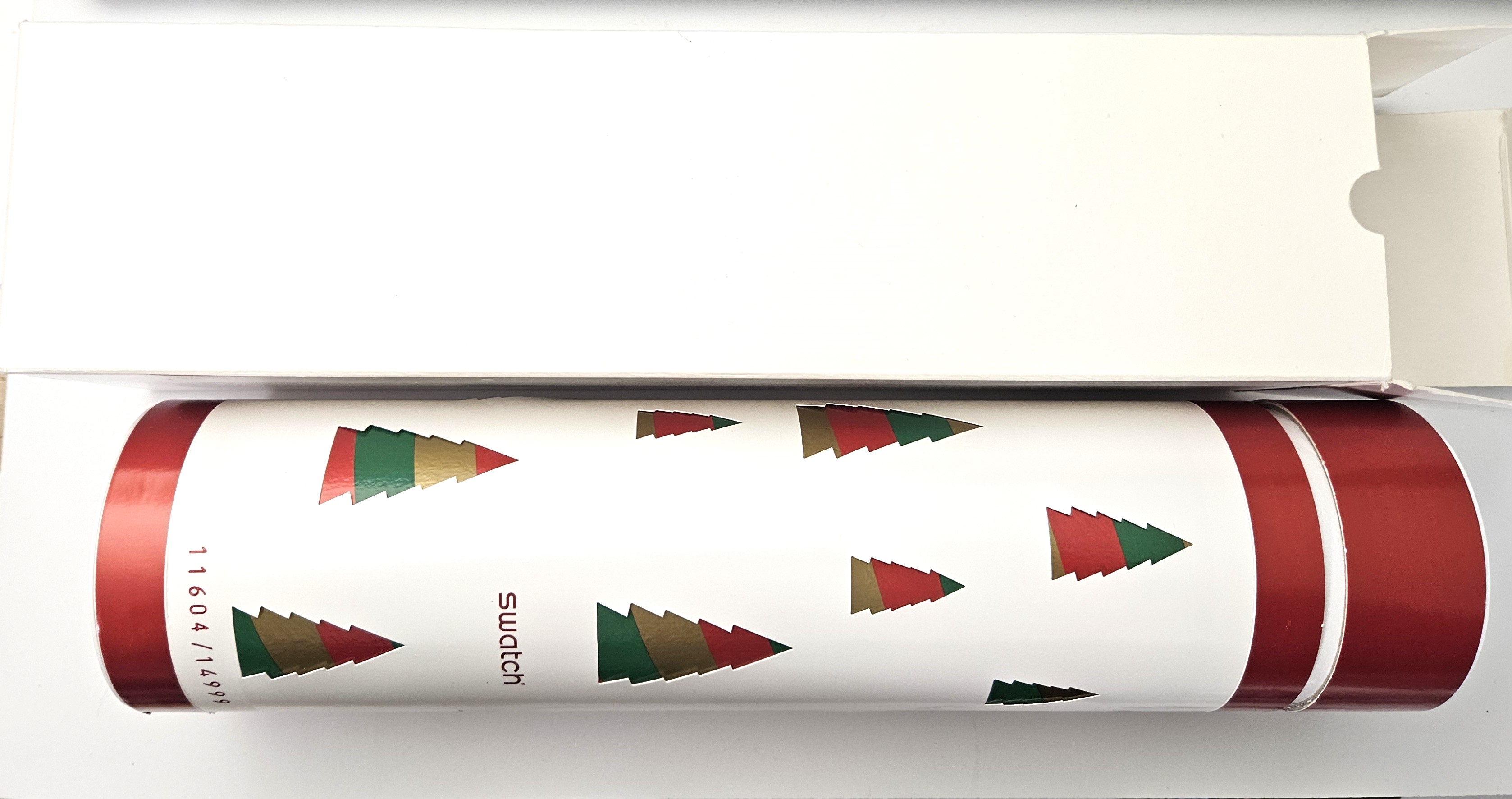 Swatch Special 2014 - SUOZ709S - Holiday Twist - NUOVO - Occasione Natale 2014 - Edizione limitata questo è il numero 11604/14999 perfettamente funzionante nella sua custodia originale - Display analogico - Resistente all'acqua fino a 3 bar - Tipo di movimento Quarzo Svizzero - Cassa e Cinturino in Plastica