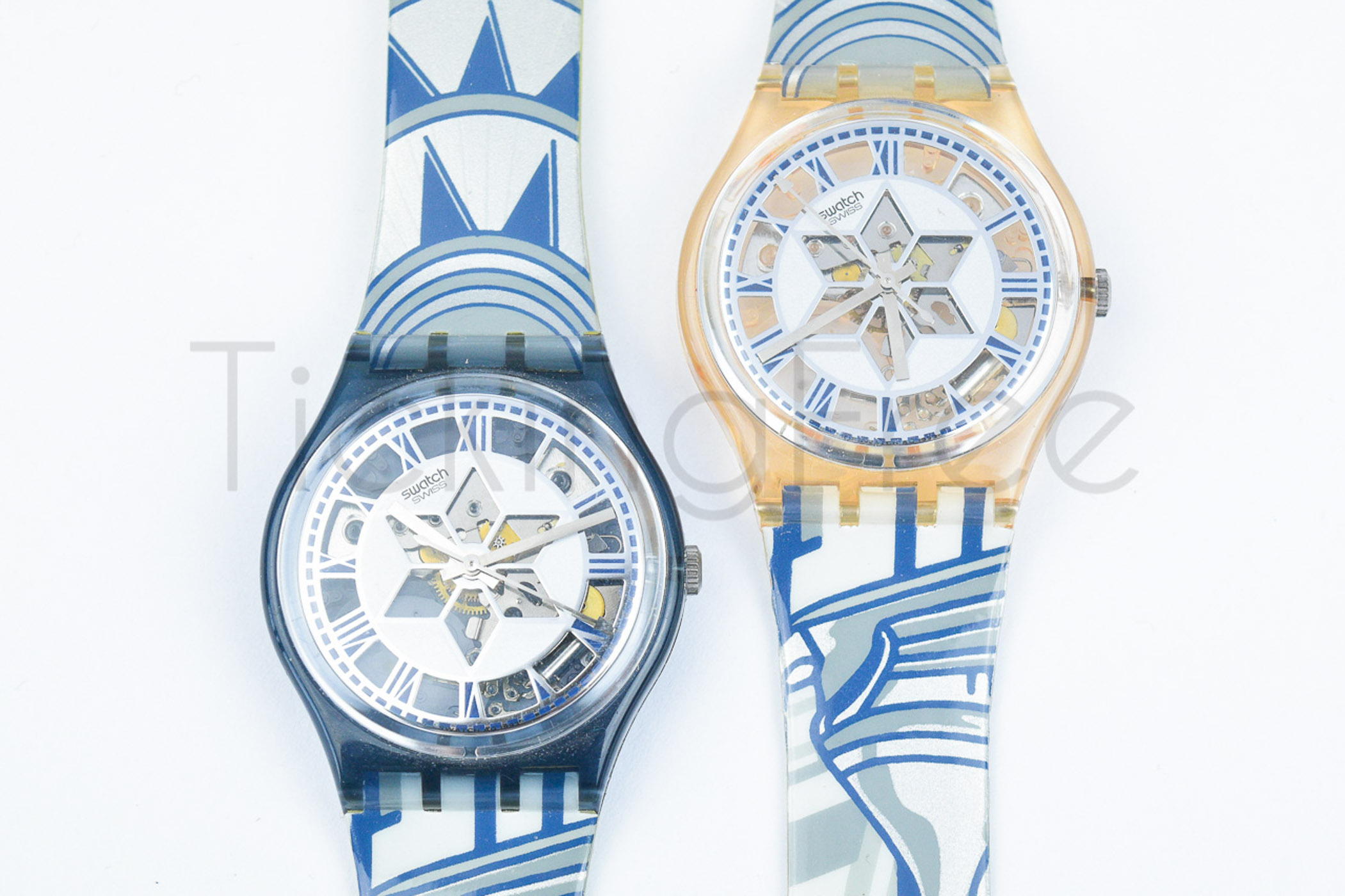 Swatch Prototype 1994 - GP109 + GP109P1 - Decoscraper + Variante (Variante di cassa, cinturino e fibia di colore rosa) - Nuovi - entrambi funzionanti e completi di custodia originale - Display Analogico