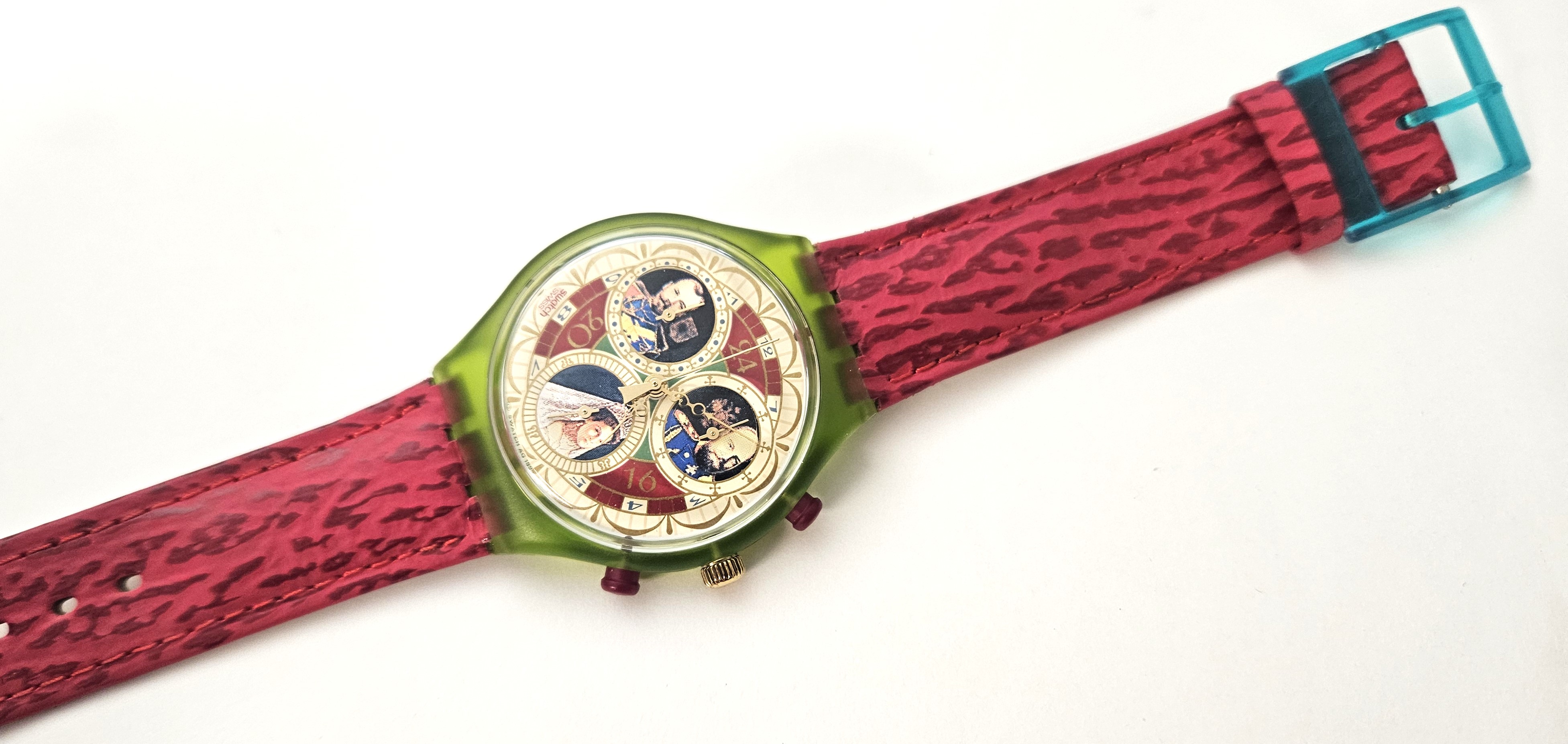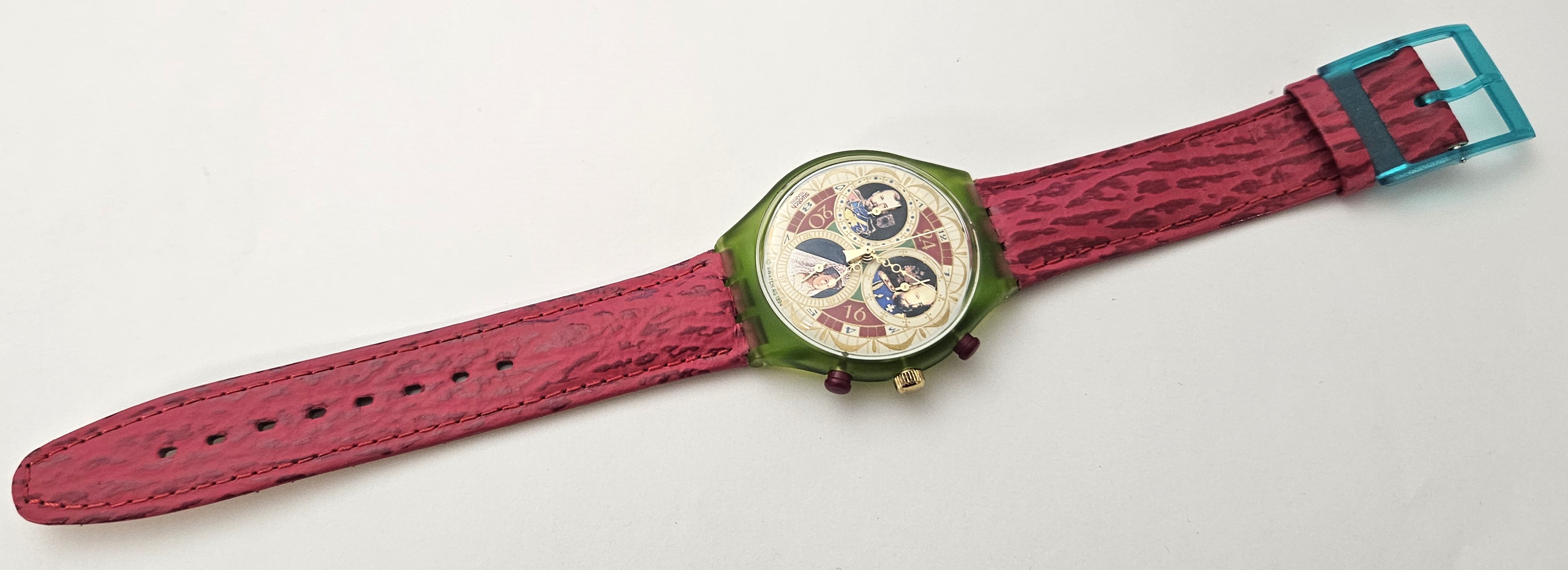 Swatch Chrono 1995 - SCG107 - Russian Treasury cinturino in pelle - Nuovo - perfettamente funzionante nella sua custodia originale - Display Chronografo - Resistente all'acqua fino a 3 Bar - cassa in plastica e cinturino elasticizzato -