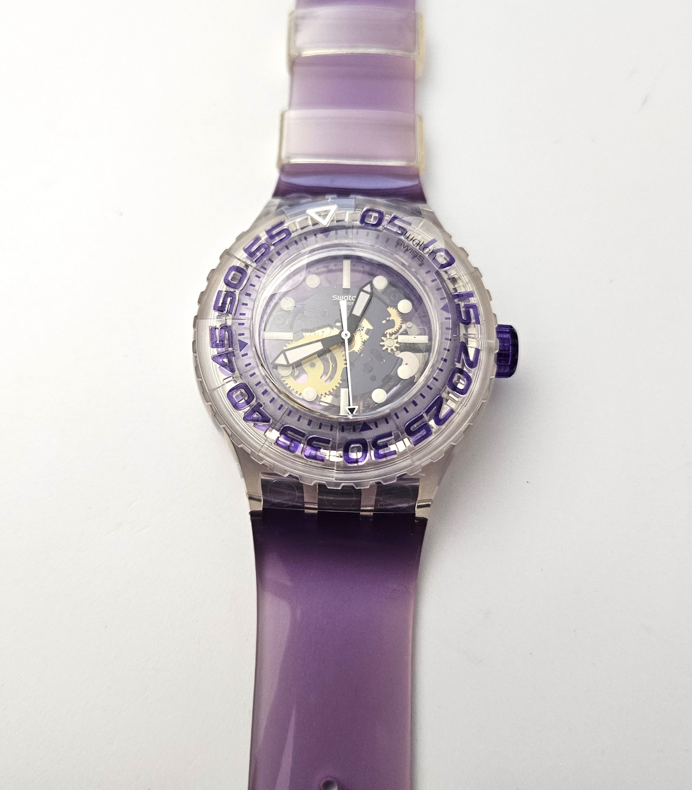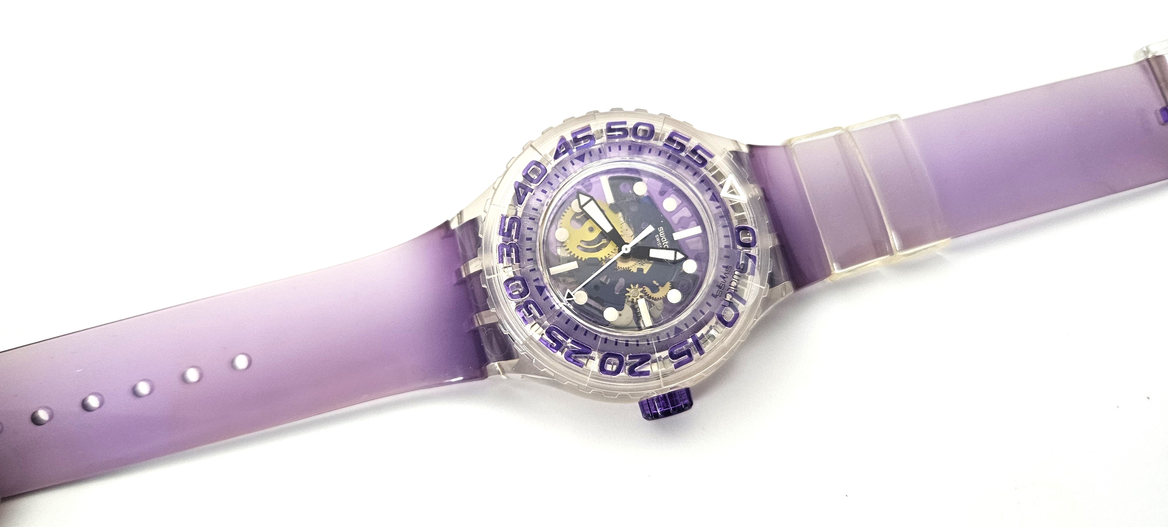 Swatch Scuba 2015 - SUUK106 - Berry-Tini - NUOVO - perfettamente funzionante nella sua custodia originale - Display analogico - Resistente all'acqua fino a 20 bar - Tipo di movimento Quarzo Svizzero