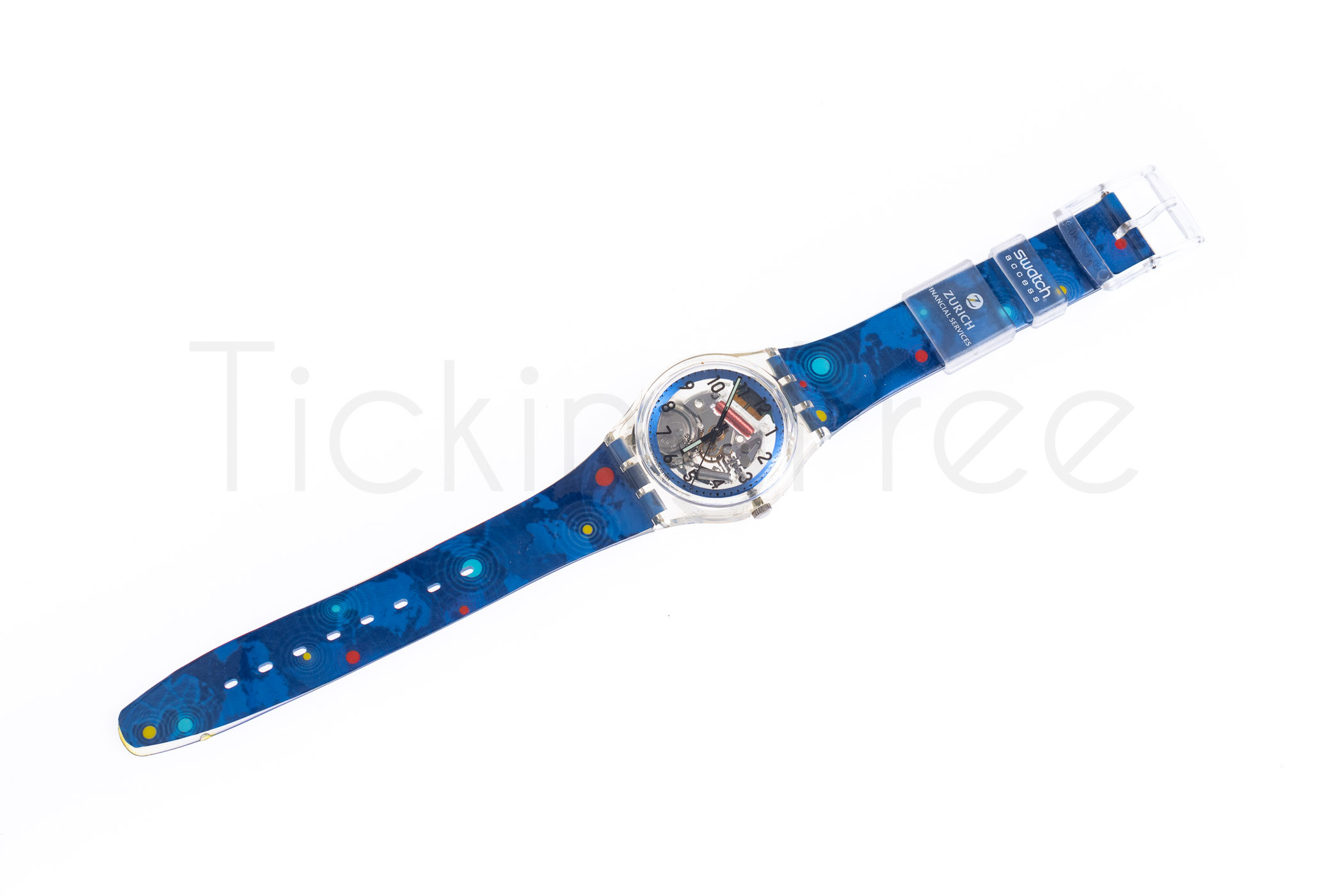 Swatch Special Access - SKK103Z - Clearance (Adelbolden) Zurich - Nuovo - In occasione della fondazione Zurich Financial Services - perfettamente funzionante nella sua custodia originale - Display analogico - Resistente all'acqua fino a 3 Bar - Tipo di movimento Quarzo Svizzero - Cassa e Cinturino in Plastica
