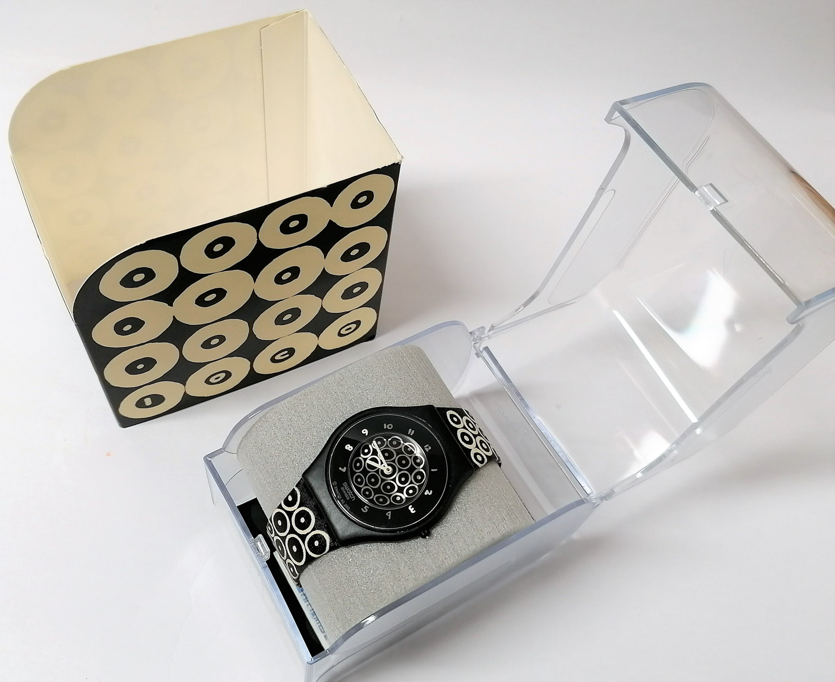 Swatch Special Skin Luxury collection 2003 - SFZ104 - CORSO COMO - NUOVO - perfettamente funzionante nella custodia originale - Display analogico - Resistente all'acqua fino a 3 bar - Tipo di movimento Quarzo Svizzero - Cassa in Plastica e cinturino in pelle.