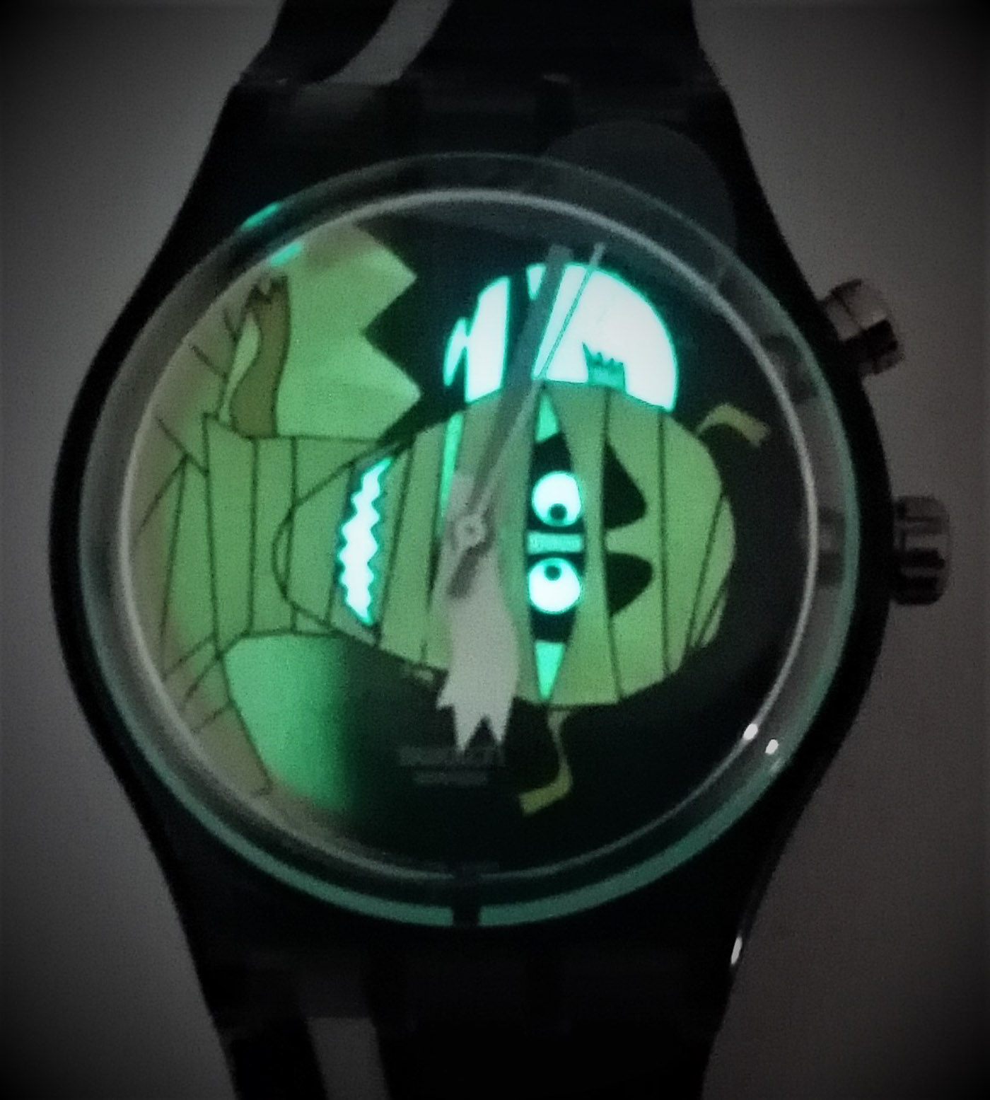 Swatch Special Loomi 2001 - GM900PACK - Mummia - NUOVO - Funzione si illumina il display - perfettamente funzionante nella sua custodia originale - Display analogico - Resistente all'acqua fino a 3 bar - Tipo di movimento Quarzo Svizzero - Cassa e cinturino in plastica