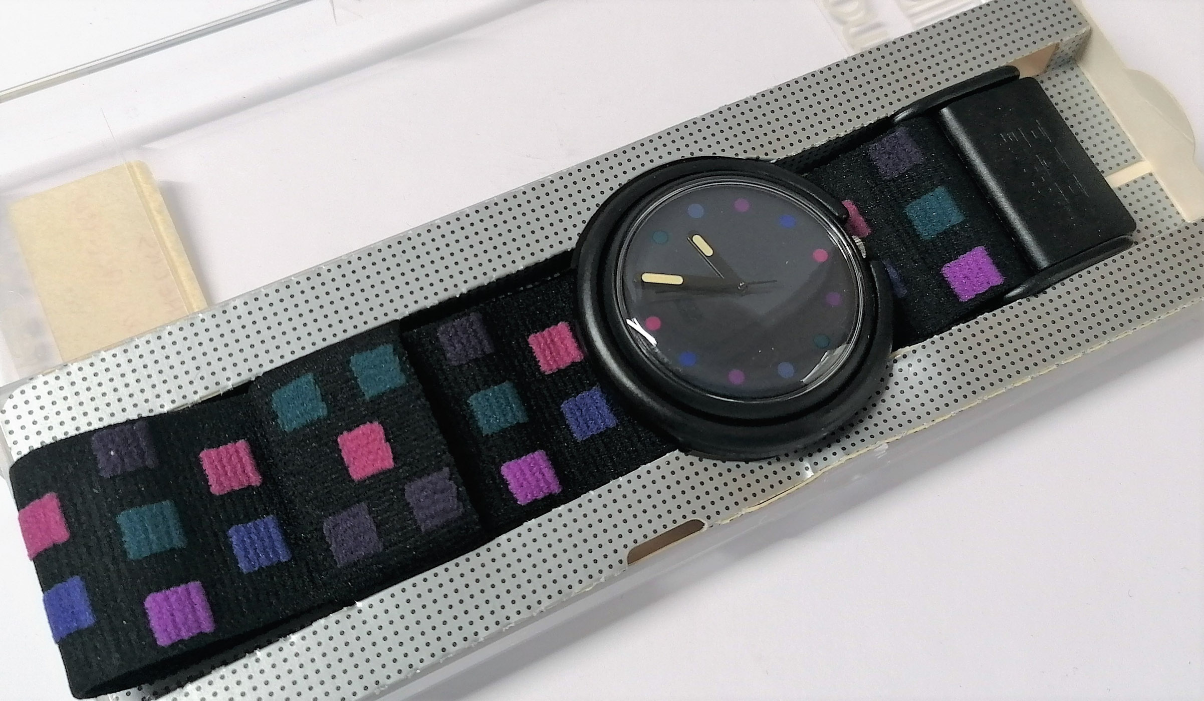 Swatch Pop 1992 - PWB172 - Checks - NUOVO - perfettamente funzionante nella sua custodia originale - Display analogico - Resistente all'acqua fino a 3 bar - Tipo di movimento Quarzo Svizzero - Cassa in plastica e cinturino in tessuto elasticizzato -