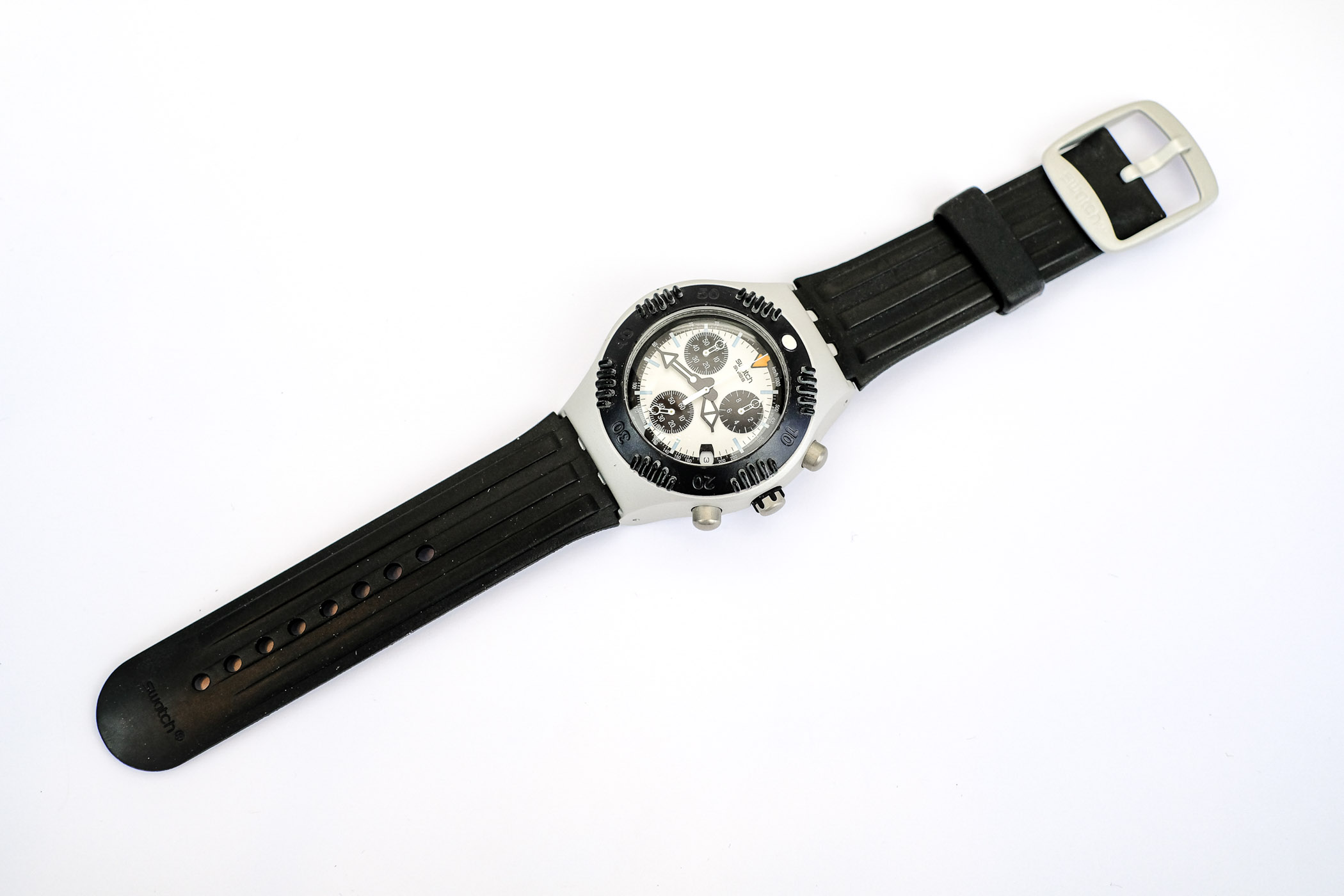 Swatch Irony Scuba chrono 2000 - YBS4002 - Sine Curve - NUOVO - perfettamente funzionante nella sua custodia originale - funzione cronografo - Display analogico - Resistente all'acqua fino a 20 bar - Tipo di movimento Quarzo Svizzero - diametro cassa 46,2 mm -