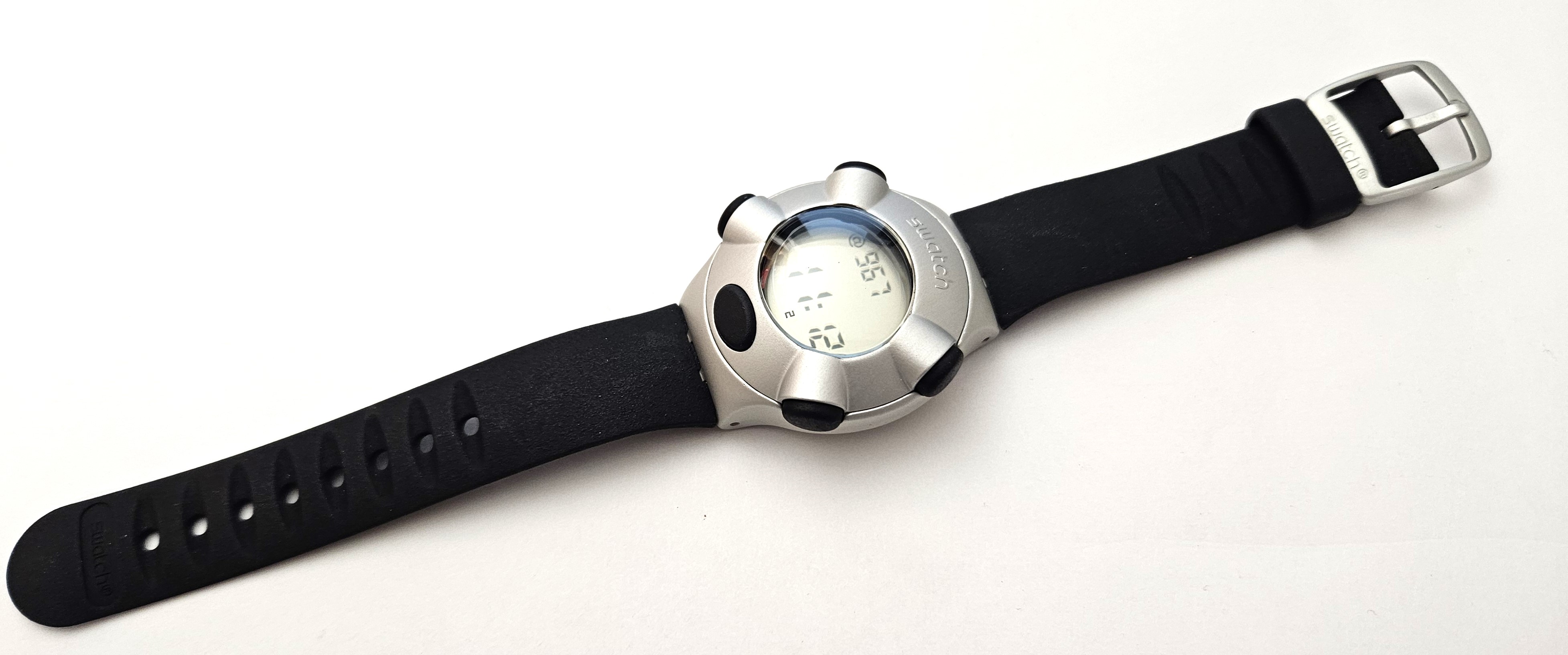 Swatch Irony Beat 1999 - YFS4000 - Vitual wave - NUOVO - diametro cassa 39,00 mm - perfettamente funzionante nella sua custodia originale - Display Digitale - Resistente all'acqua fino a 3 bar - Tipo di movimento Quarzo Svizzero - funzioni di movivento 24 ore, sveglia, retroilluminazione, cronografo, cronometro, 2 fusi orari ecc.
