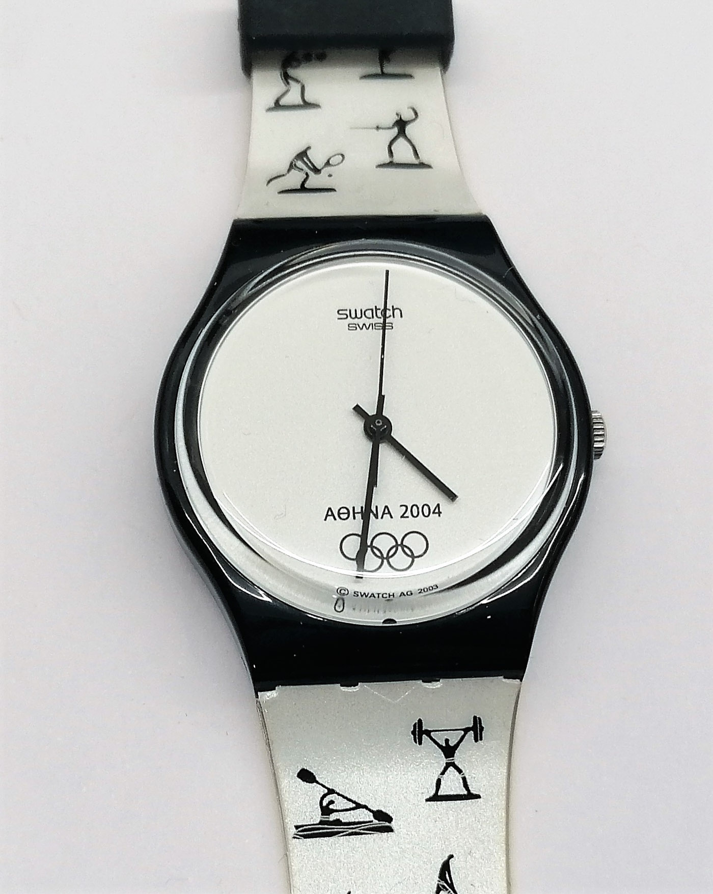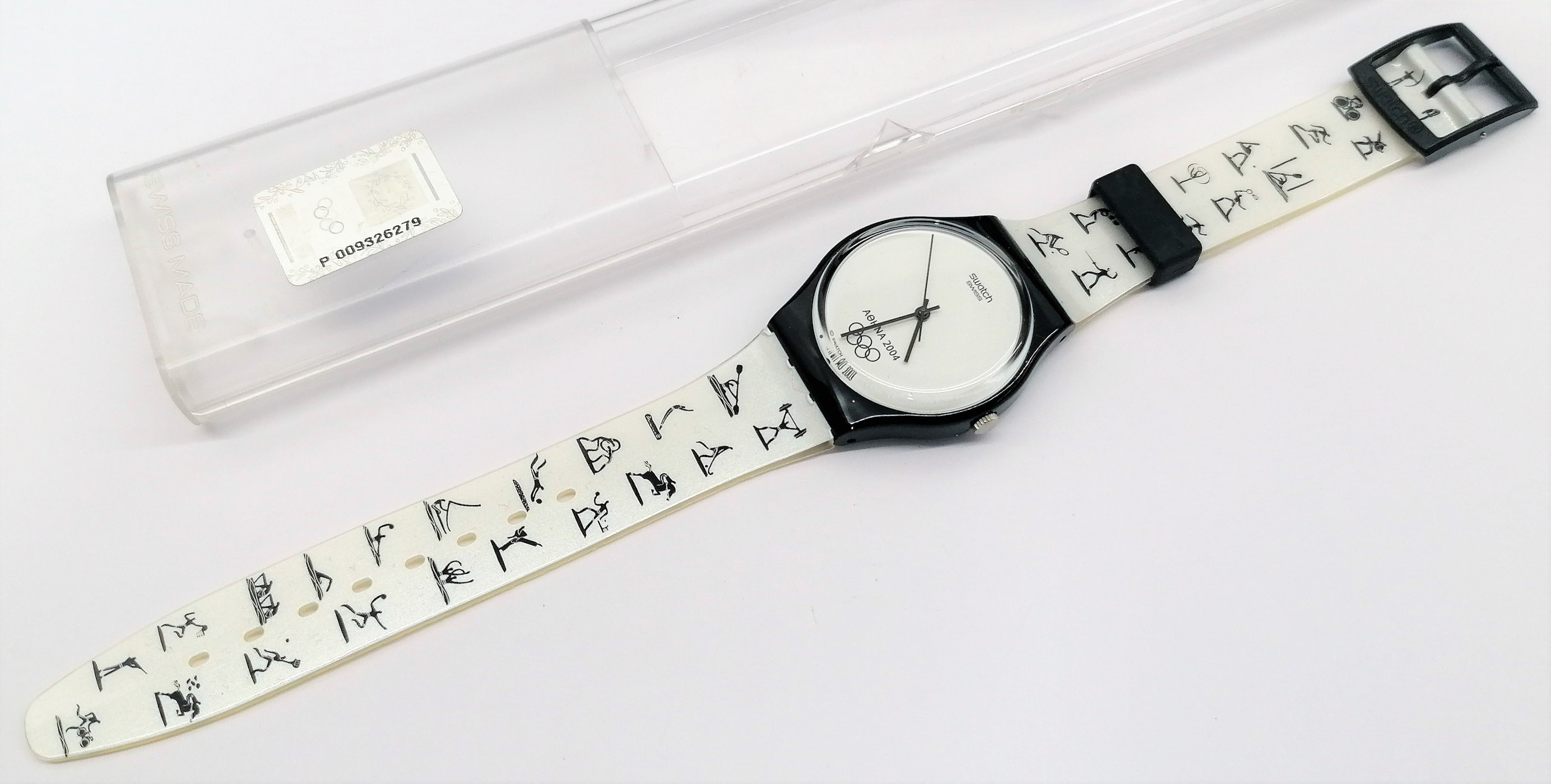 Swatch Olympic Special 2004 - GB217 - Athlimata - NUOVO - Olympic Games Atene 2004 - perfettamente funzionante nella sua custodia originale - Display analogico - Resistente all'acqua fino a 3 bar - Tipo di movimento Quarzo Svizzero