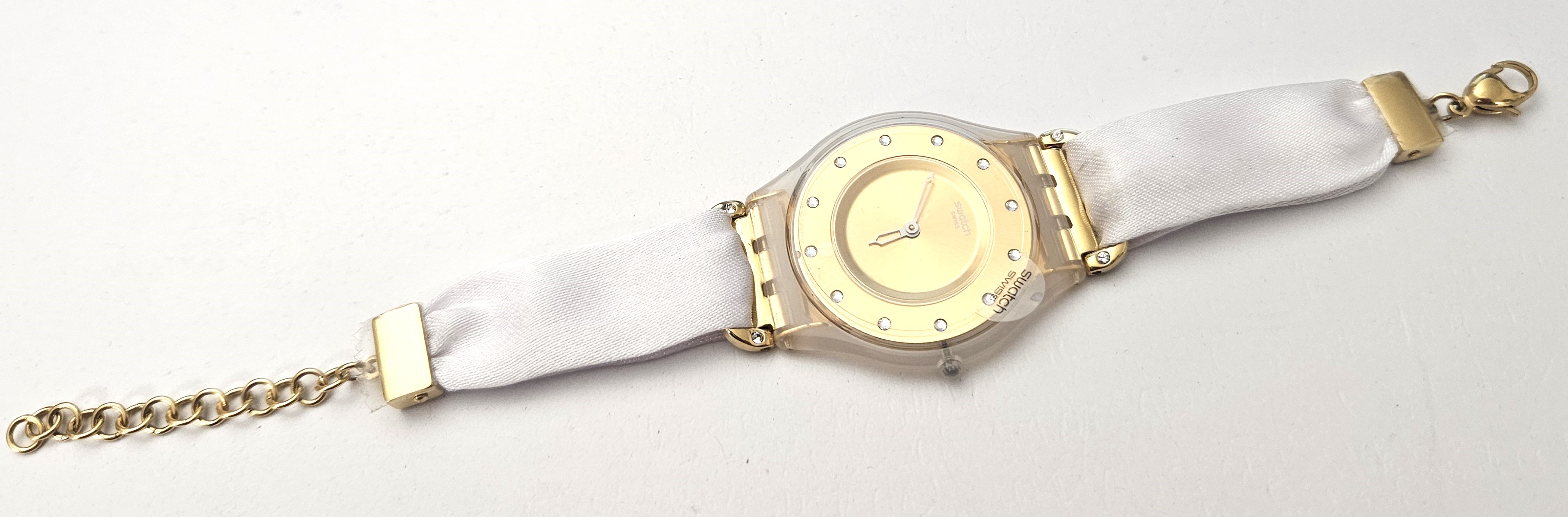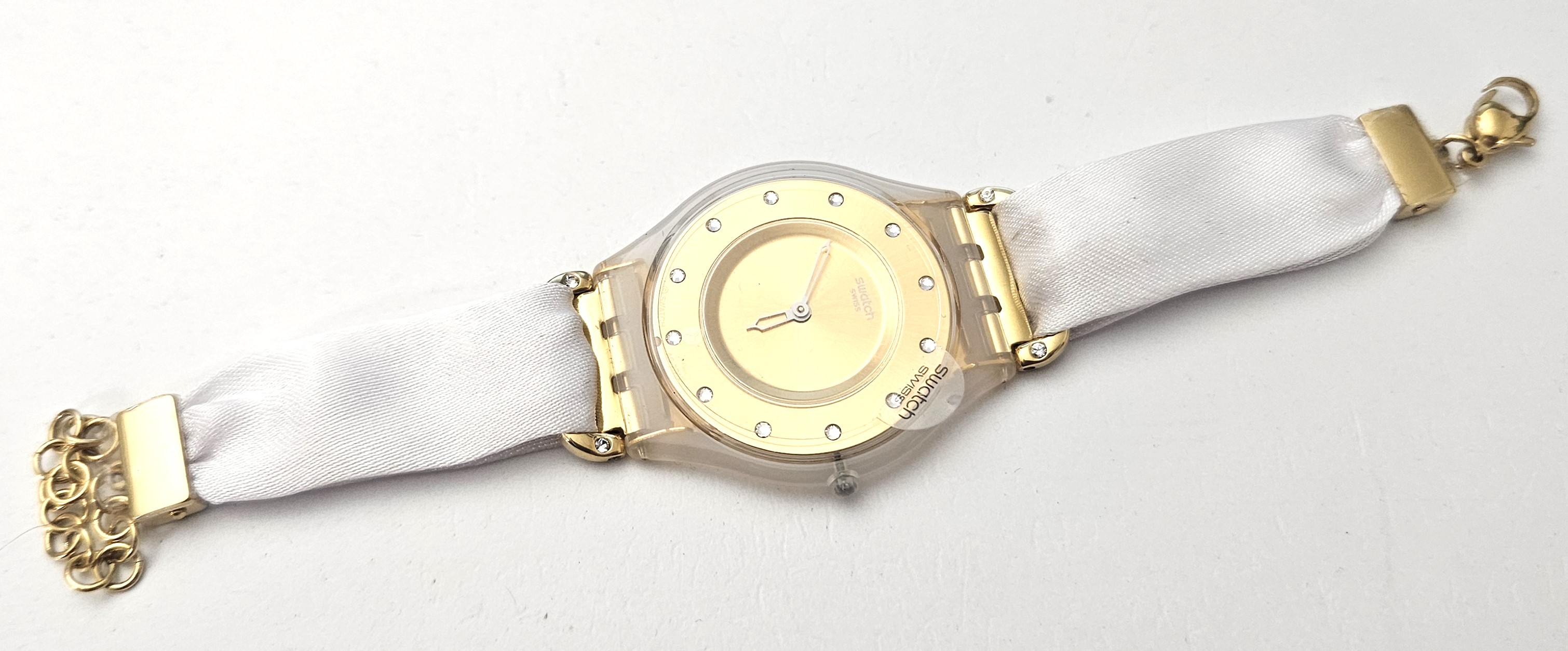Swatch Skin 2014 - SFK374G - White silk - Nuovo - perfettamente funzionante - Display Analogico - Resistente all'acqua fino a 3 bar - Tipo di movimento Quarzo Svizzero - completo di scatola originale - batteria nuova già inserita -