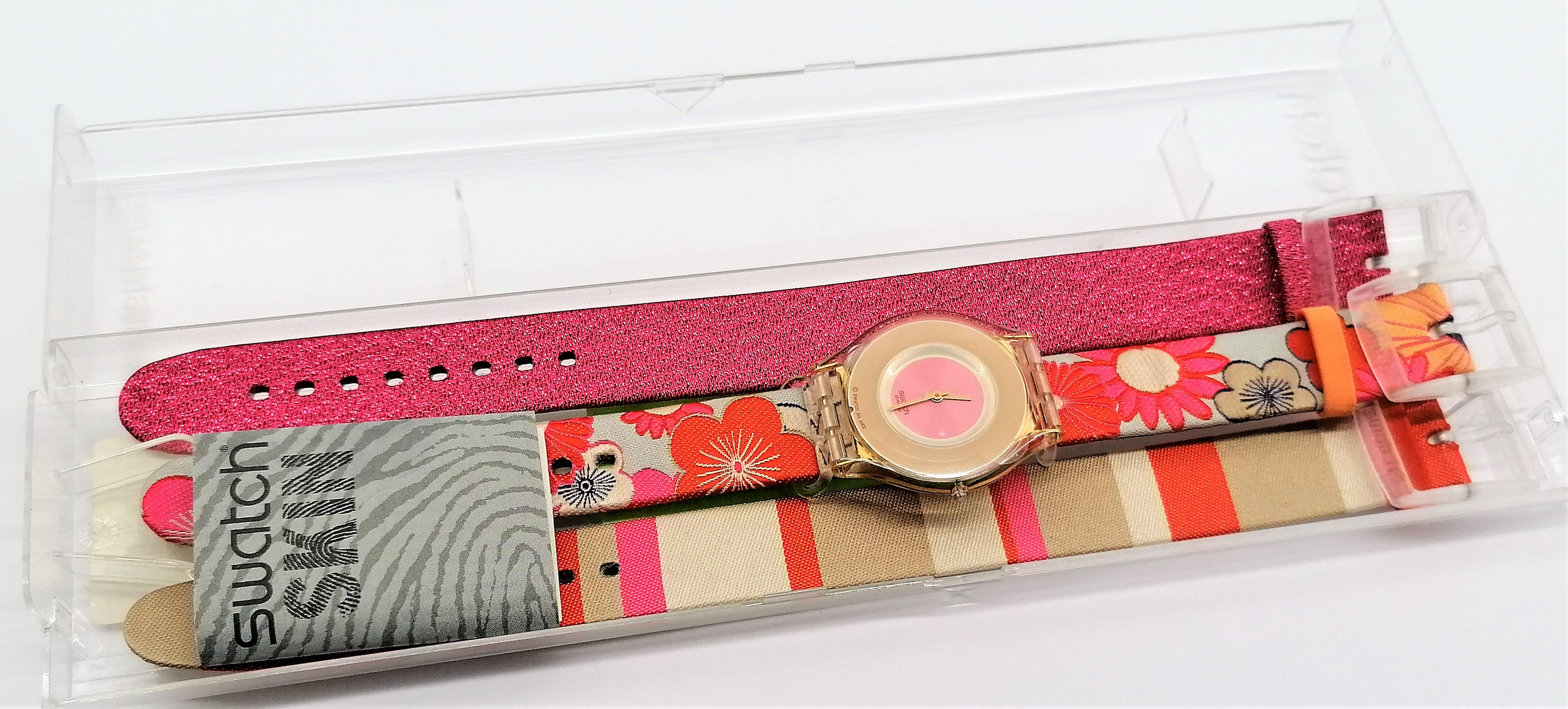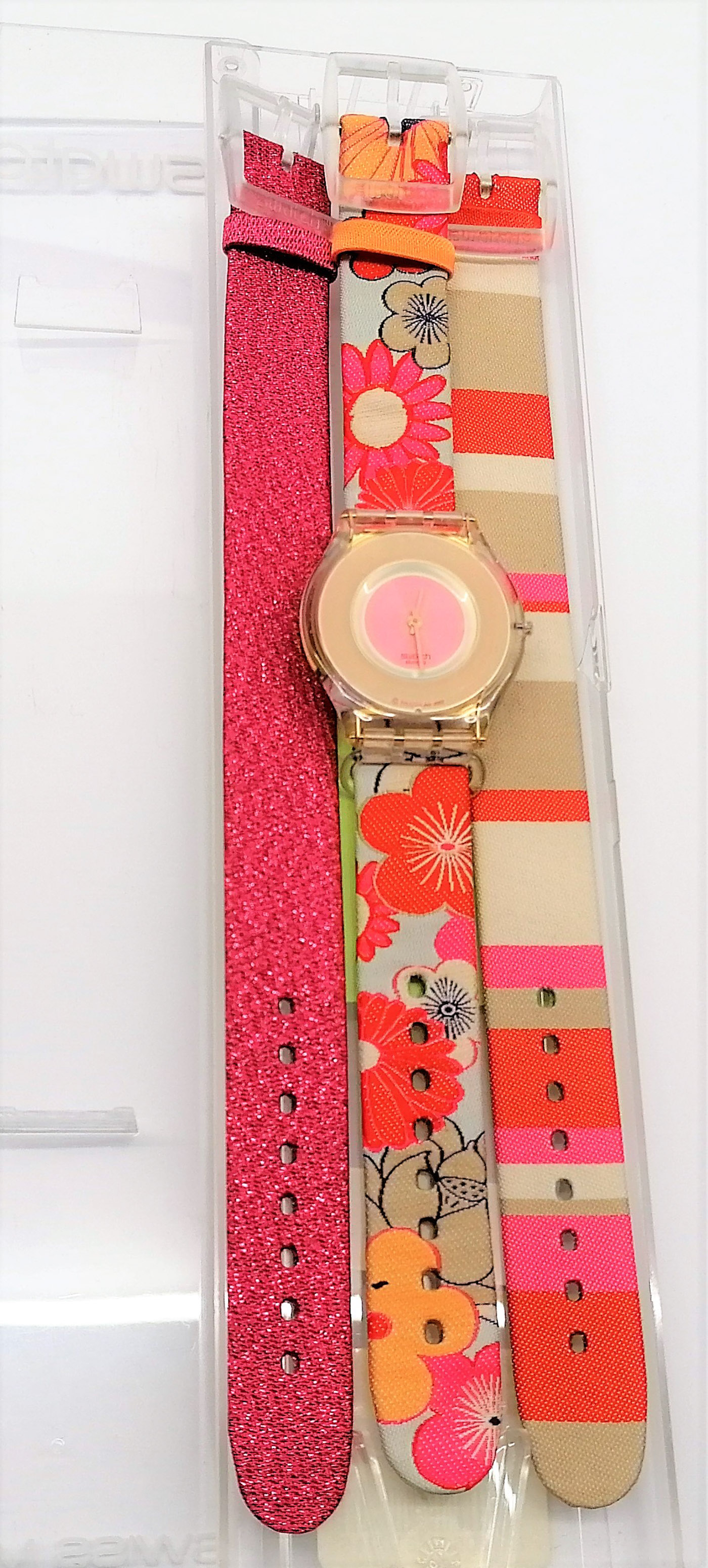 Swatch Luxury Special 2003 - SFK179P - Grapyflower - Nuovo - venduto solo a Place Vendome a Parigi - perfettamente funzionante nella sua custodia originale - Display analogico - Resistente all'acqua fino a 3 Bar - Tipo di movimento Quarzo Svizzero - Cassa in plastica e Cinturini in Pelle -