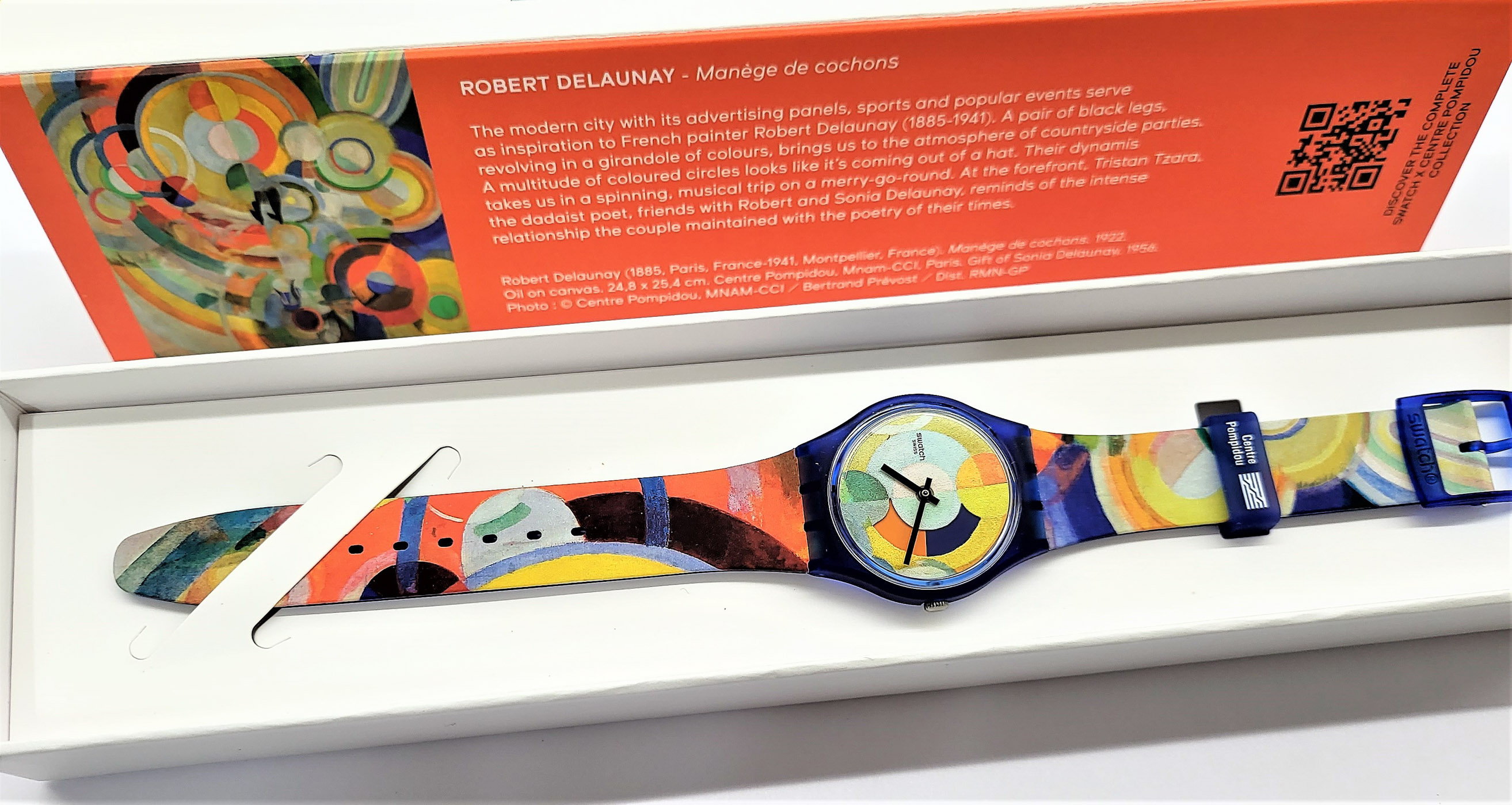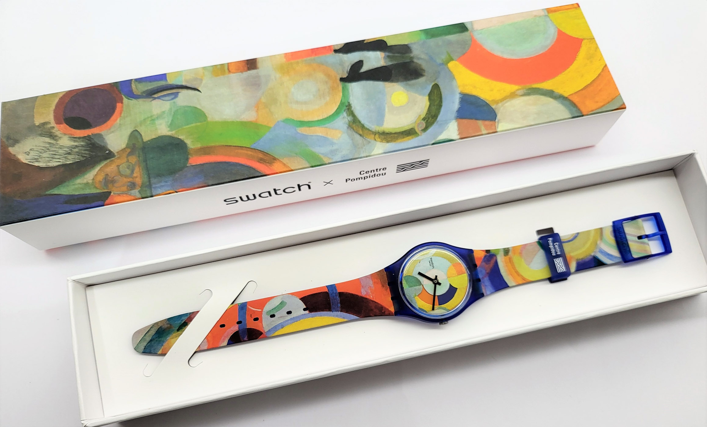 Swatch Special 2021 - GZ712 - Carousel By Robert Delaunay - NUOVO - esposto a Parigi al Centre Pompidou - perfettamente funzionante nella sua confezione speciale - Display analogico - Resistente all'acqua fino a 3 bar - Tipo di movimento Quarzo Svizzero - Cassa in Plastica e cinturino in silicone - dm cassa 34 mm -