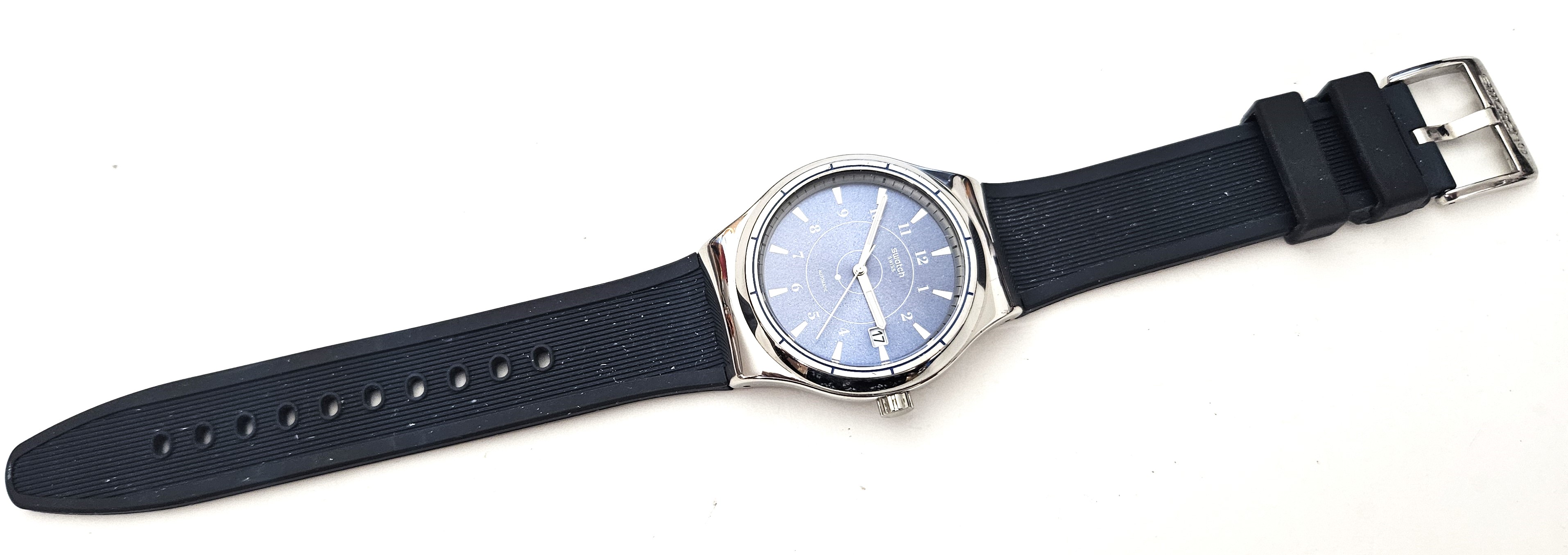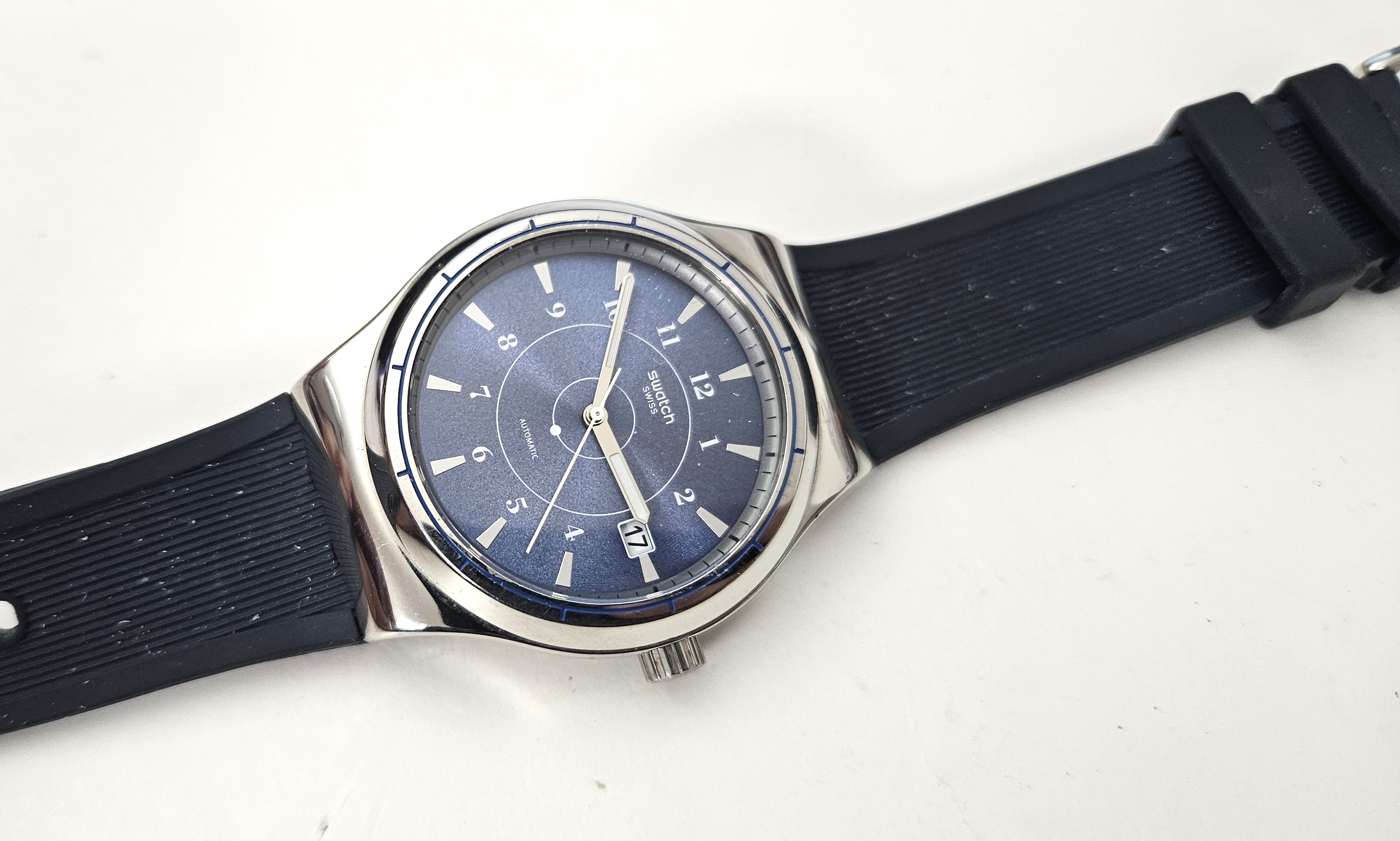 Swatch Irony Sistem51 2016 - YIS404 - Sistem Fly - Usato leggermente - perfettamente funzionante senza la sua custodia originale - Display analogico - Resistente all'acqua fino a 3 Bar - Tipo di movimento Automatico - cinturino in silicone - diametro cassa 42 mm -