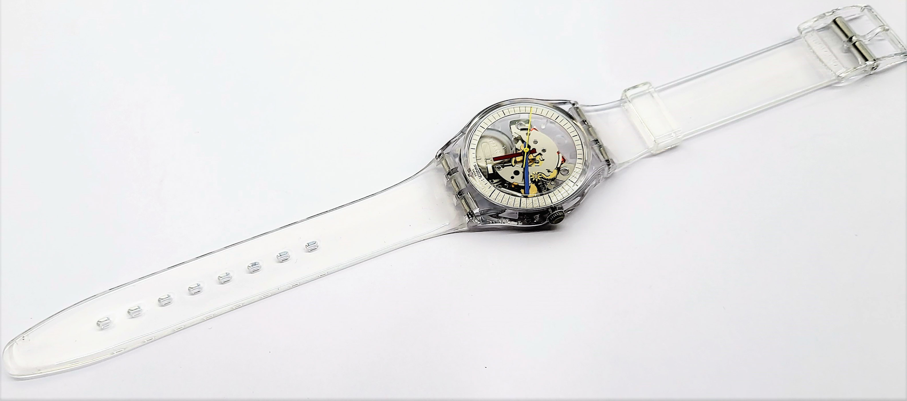 Swatch Gent 2020 - SO28K100 - Clearly Gent - Nuovo - perfettamente funzionante nella sua custodia originale - Display analogico - Resistente all'acqua fino a 3 Bar - Tipo di movimento Quarzo Svizzero - Cassa in Plastica e cinturino in silicone - dm cassa 34 mm.