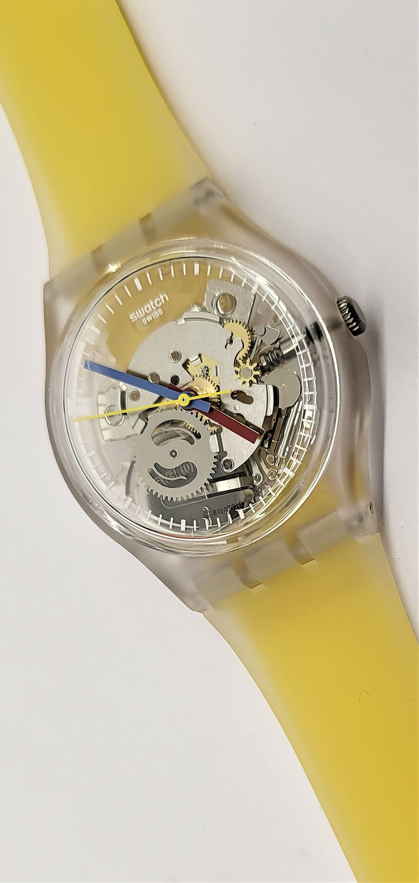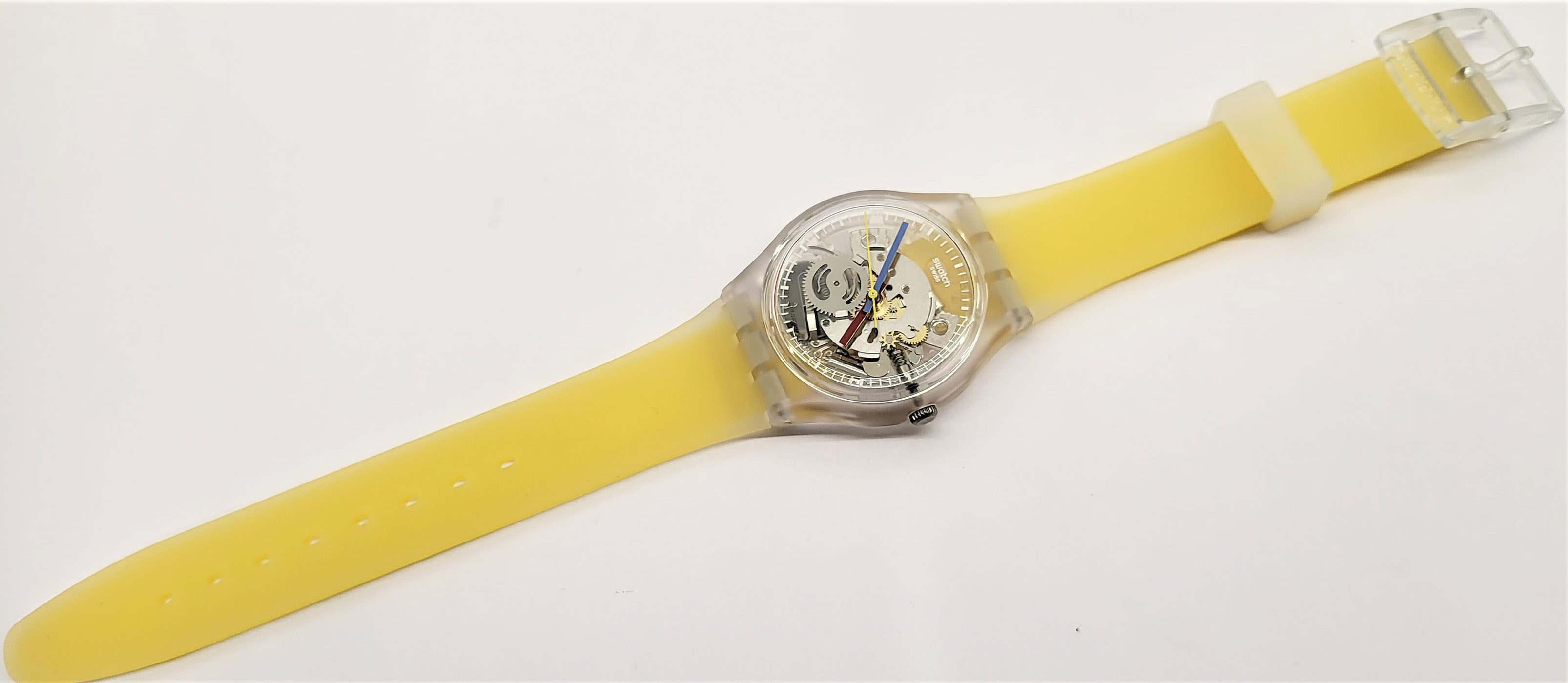 Swatch Standards 2020 - GE291 - Clearly Yellow Striped - Nuovo - perfettamente funzionante nella sua custodia originale - Display analogico - Resistente all'acqua fino a 3 Bar - Tipo di movimento Quarzo Svizzero