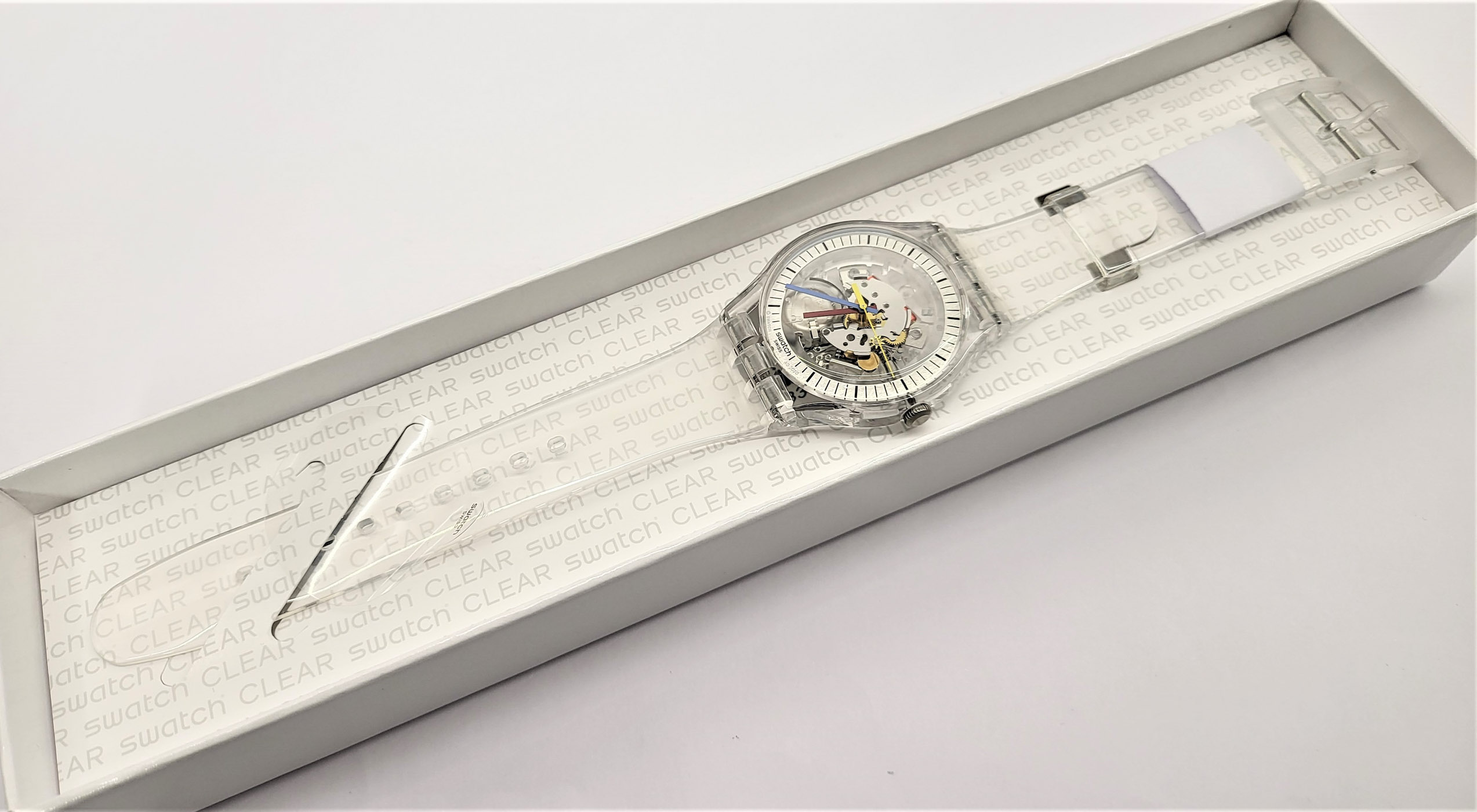 Swatch New Gent 2020 - SO29K100 - Clearly New Gent - Nuovo - perfettamente funzionante nella sua custodia originale - Display Analogico - Resistente all'acqua fino a 3 Bar Cinturino in silicone - dm cassa 41 mm
