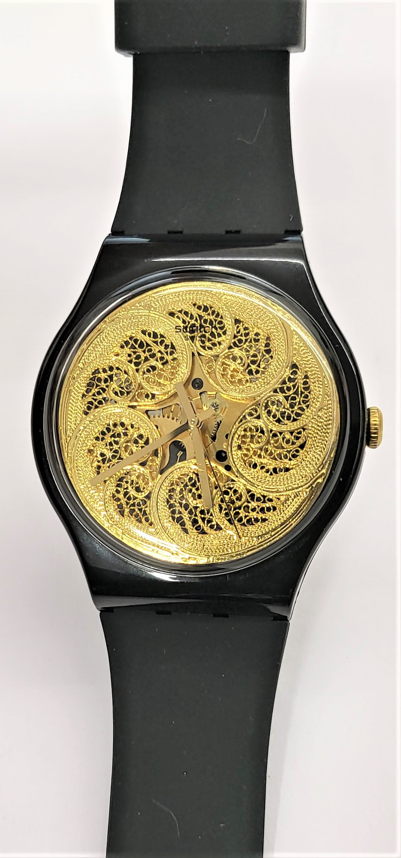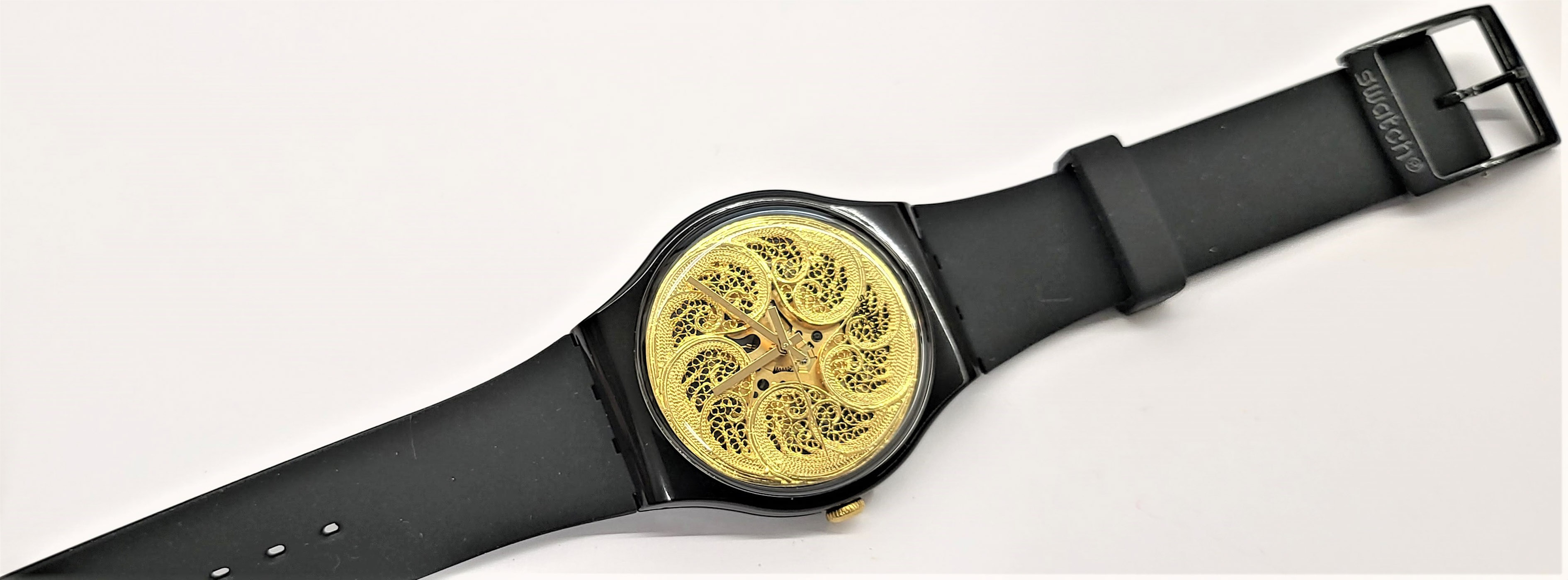 Swatch Special 2016 - SUOZ212S - Lookseasy by Joana Vasconcelos - 054/999 - Nuovo - perfettamente funzionante completo nella sua custodia originale - Joana Vasconcelos ha disegnato gli schizzi di design per il quadrante e li ha realizzati con artisti del nord del Portogallo, Ogni quadrante è realizzato a mano individualmente e rifinito con oro vero. - Display analogico - Resistente all'acqua fino a 3 bar - Tipo di movimento Quarzo Svizzero - Diametro cassa 41 mm - Cassa in Plastica e e Cinturino in gomma -