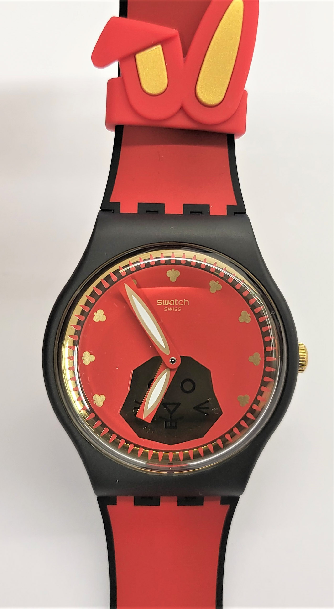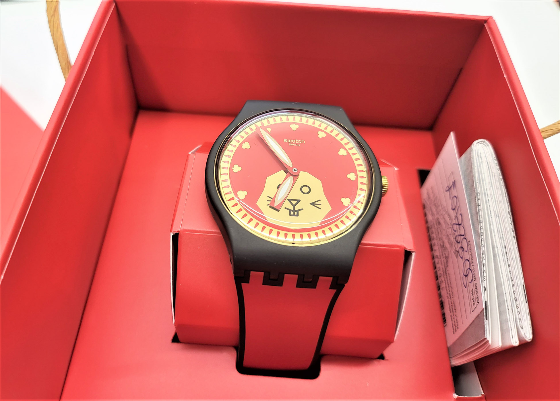 Swatch Special 2023 - SO32Z107 - YEAR OF THE RABBIT - Chinese New Year - NUOVO - perfettamente funzionante nella sua custodia speciale - Display analogico - Resistente all'acqua fino a 3 bar - Tipo di movimento Quarzo Svizzero - Cassa e Cinturino in Plastica