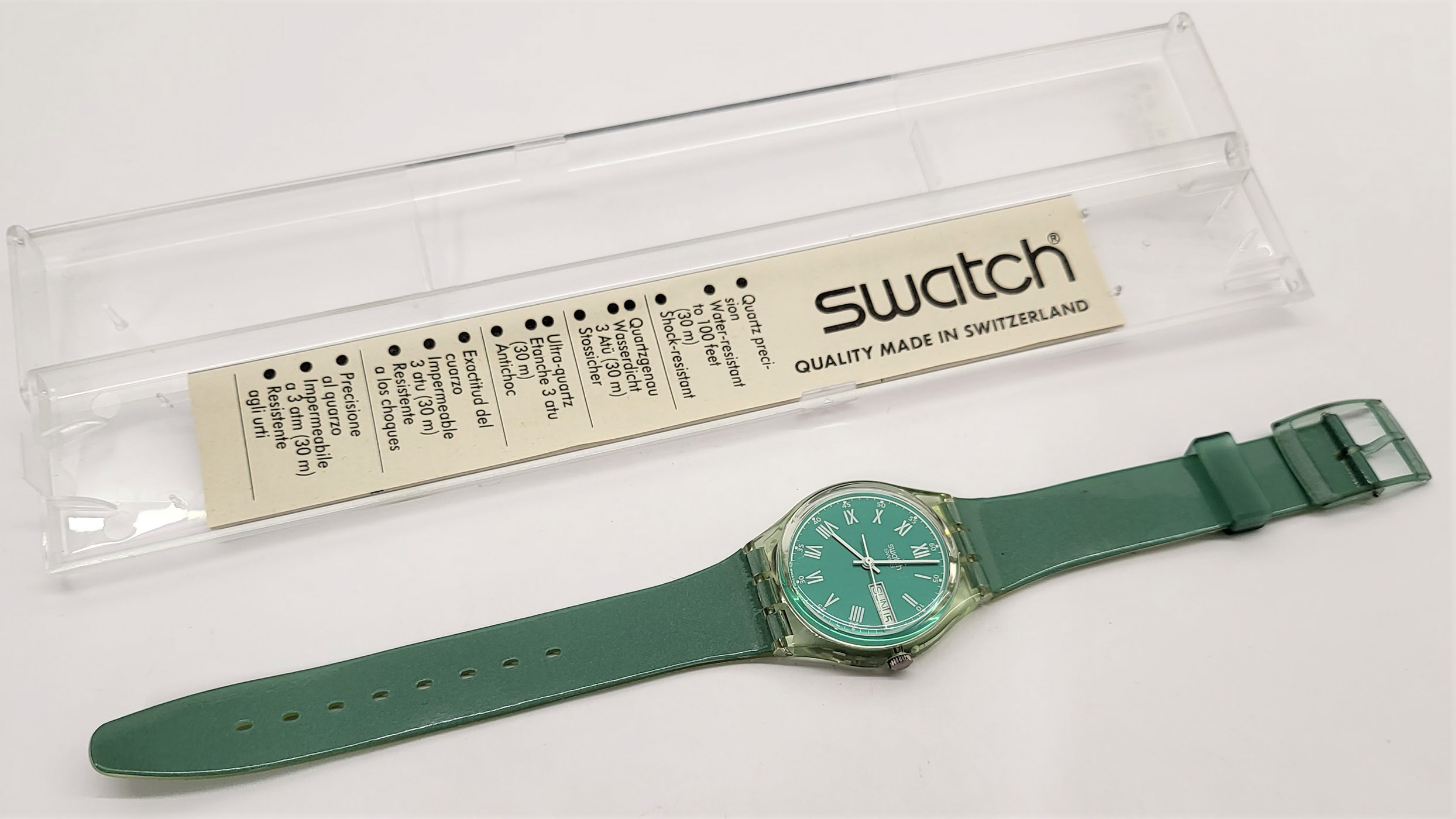 Swatch Standards - GG704 - Greenset - NUOVO - perfettamente funzionante nella sua custodia originale - Display analogico - Resistente all'acqua fino a 3 bar - Tipo di movimento Quarzo Svizzero - Cassa e Cinturino in Plastica