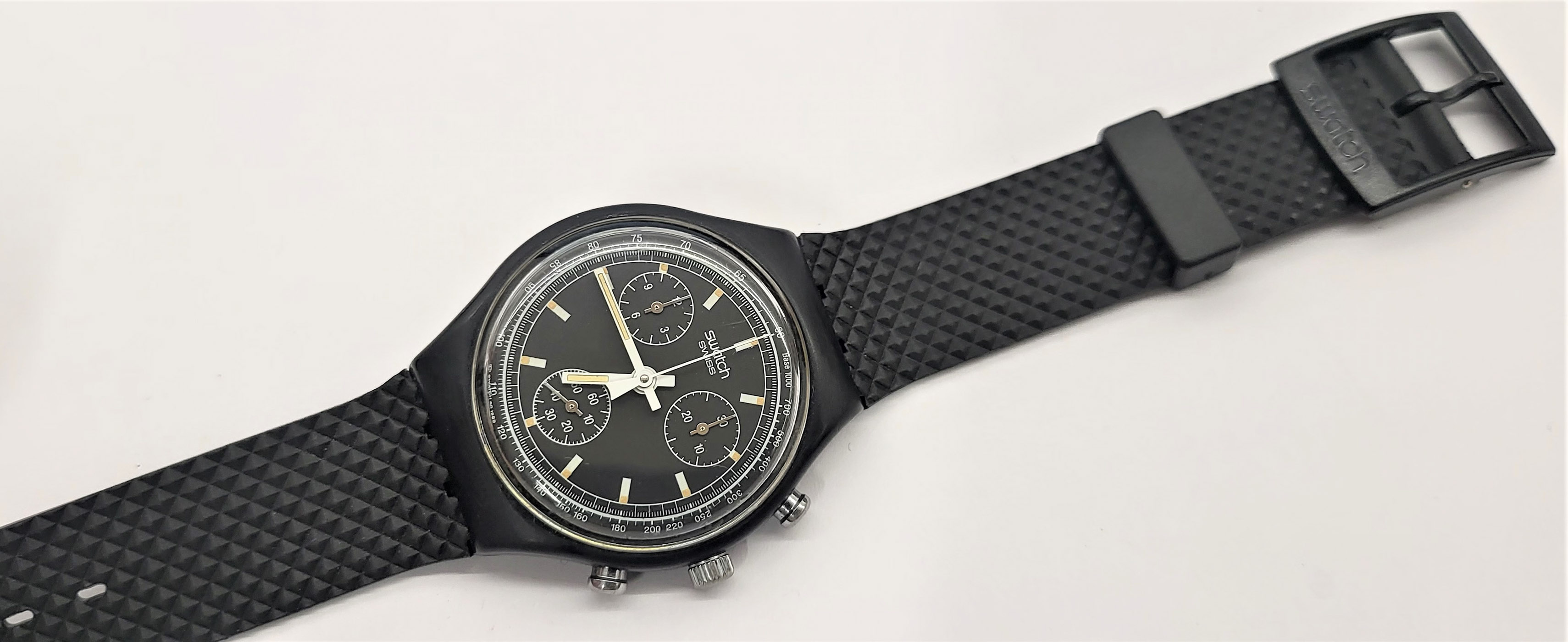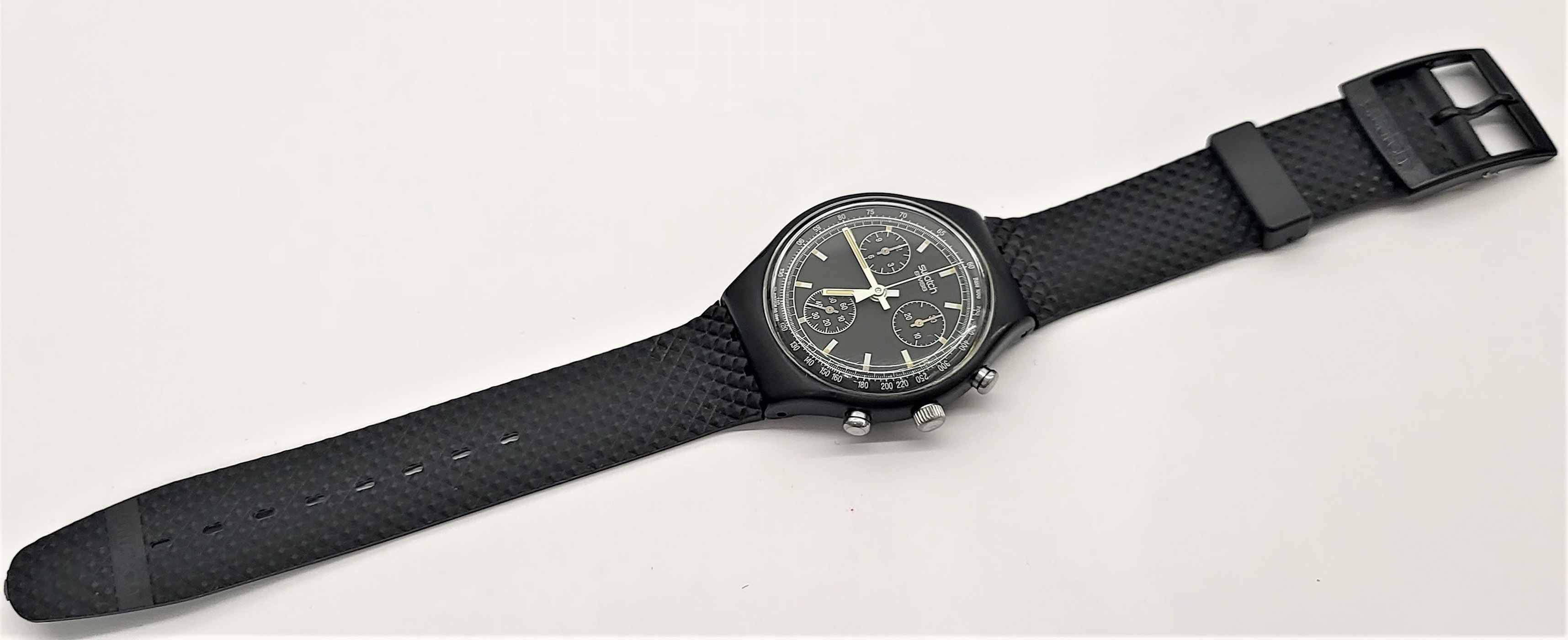 Swatch Chrono 1990 - SCB100 - Black Friday - Leggermente Usato - Cinturino Nuovo - perfettamente funzionante SENZA custodia originale - Display Chronografico - Resistente all'acqua fino a 3 Bar - Tipo di movimento Quarzo svizzero.