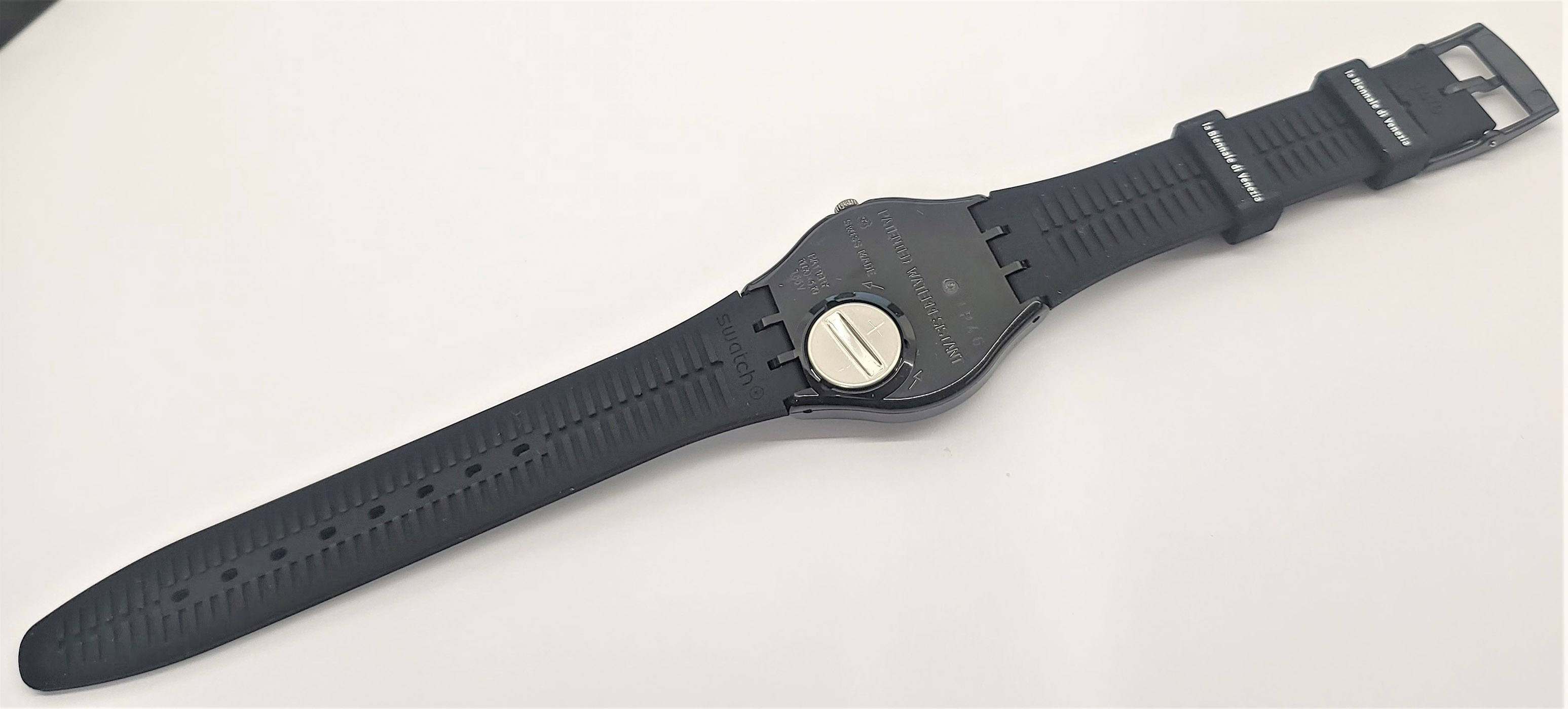 Swatch Special 2013 - GB247N - Black Suit (Biennale Arte Venezia 2013)- NUOVO - Il palazzo enciclopedico - perfettamente funzionante nella sua custodia originale - Display Analogico - Resistente all'acqua fino a 3 bar - Tipo di movimento Quarzo Svizzero