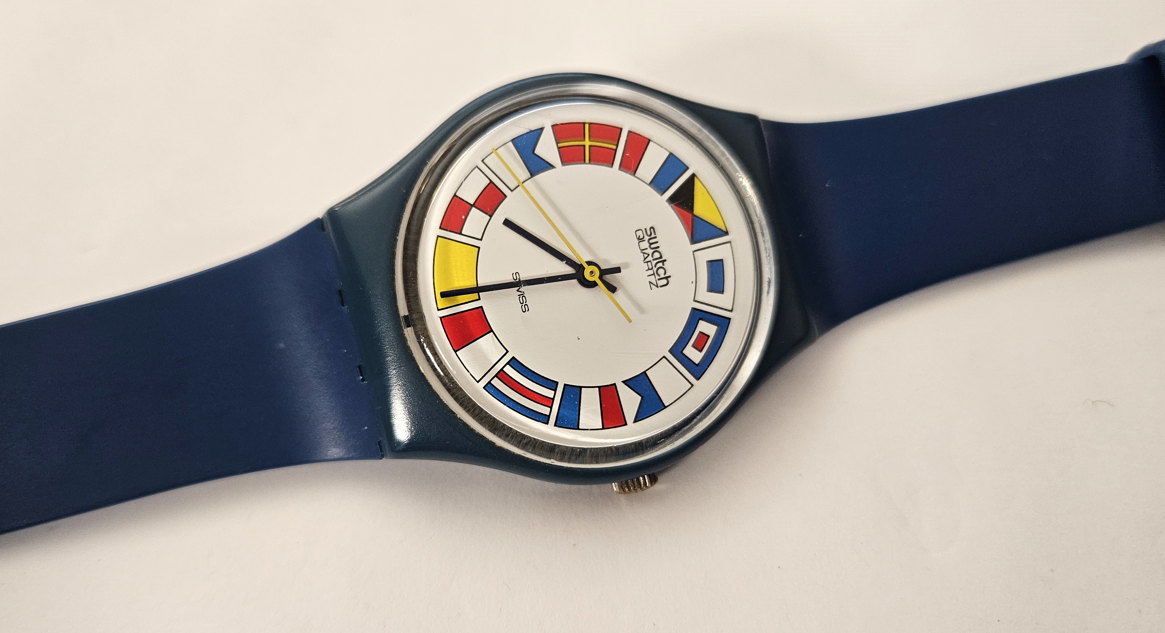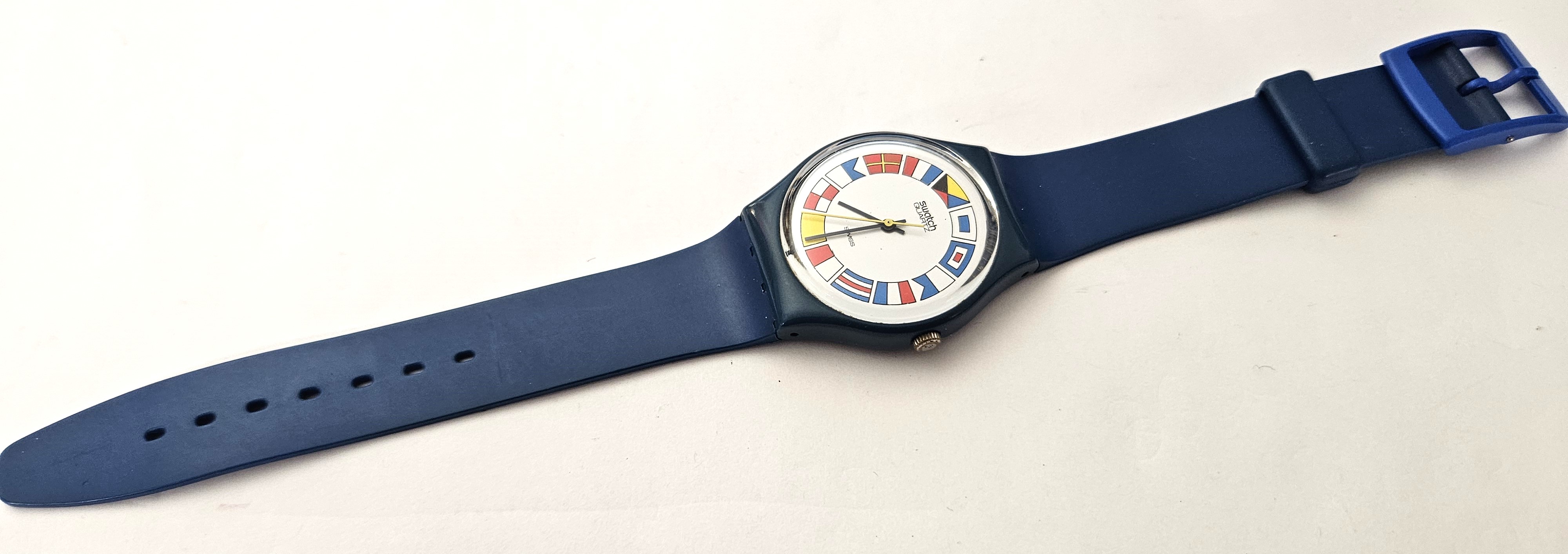 Swatch Standards 1984 - GS101 - 12Flags - Leggermente usato con Cinturino 7 buchi - perfettamente funzionante - Display Analogico - Resistente all'acqua fino a 3 bar - Tipo di movimento quarzo svizzero