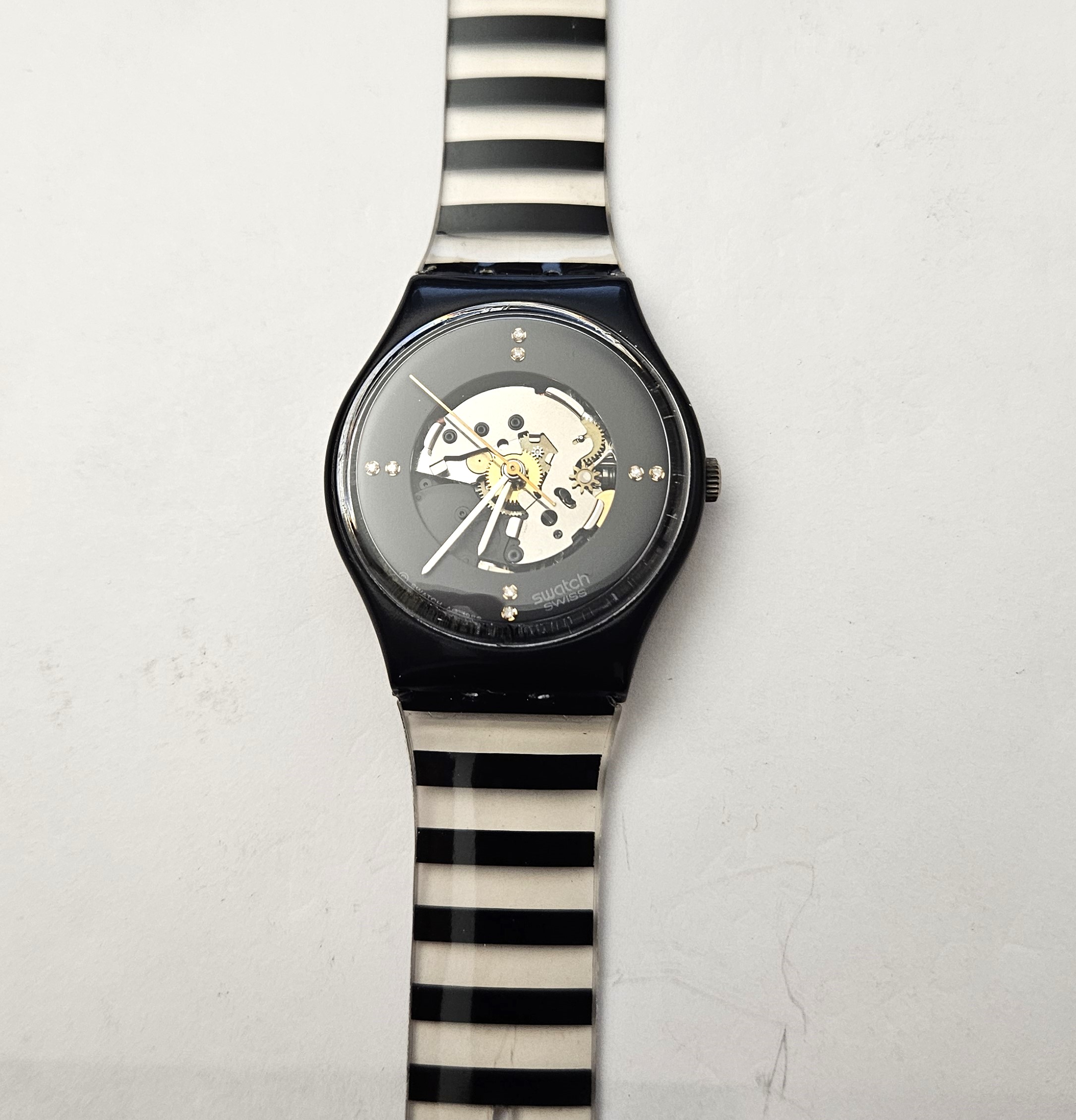 Swatch Standards 2019 - GP701 - Sneaky Peaky - Leggemente usato - perfettamente funzionante senza la sua custodia originale - Display Analogico - Resistente all'acqua fino a 3 bar - Tipo di movimento Quarzo Svizzero - diametro cassa 34 mm -