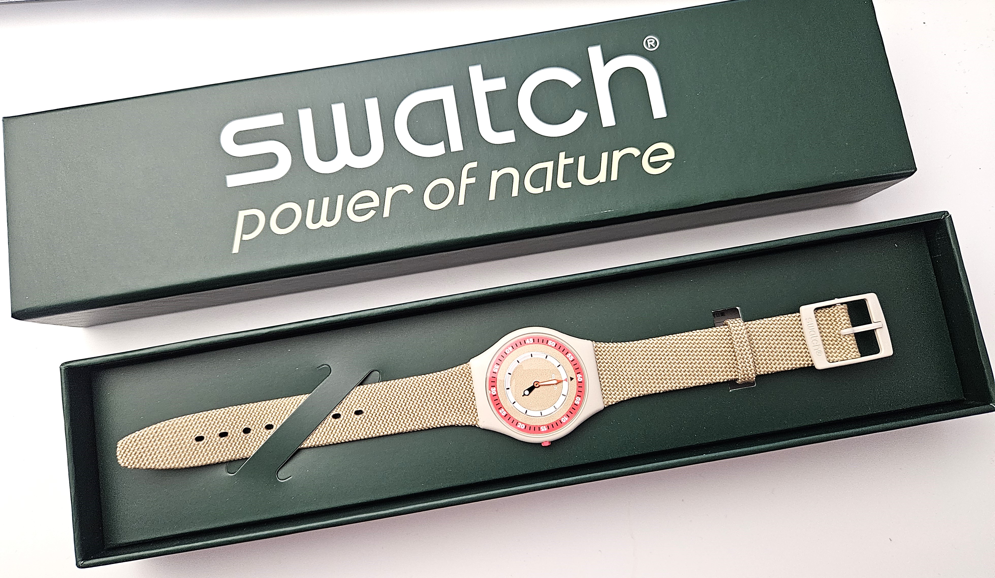 Swatch Special Skin 2024 - SS009T102 - Coral Dunes - Nuovo - serie Power of Nature - perfettamente funzionante - completo di scatola originale e batteria - diametro cassa 34 mm - Display Analogico - Resistente all'acqua fino a 3 bar - Tipo di movimento Quarzo Svizzero - cassa in bioceramica e cinturino in pelle - -