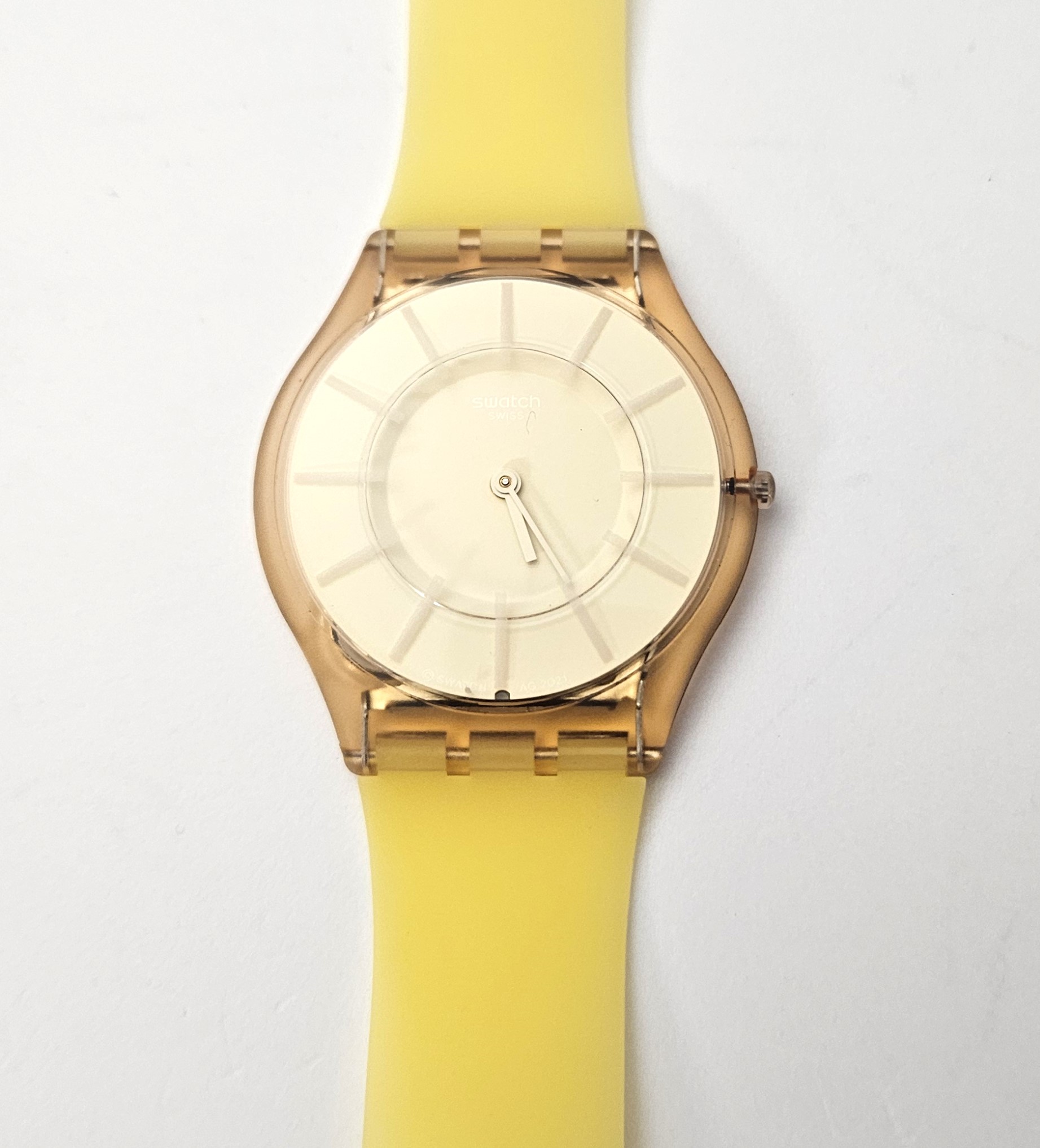 Swatch Skin 2023 - SS08J100 - Lemonata - Nuovo - perfettamente funzionante - completo di scatola originale e batteria - Display Analogico - Resistente all'acqua fino a 3 bar - Tipo di movimento Quarzo Svizzero - cassa in plastica e cinturino in silicone - diametro cassa 34 mm -