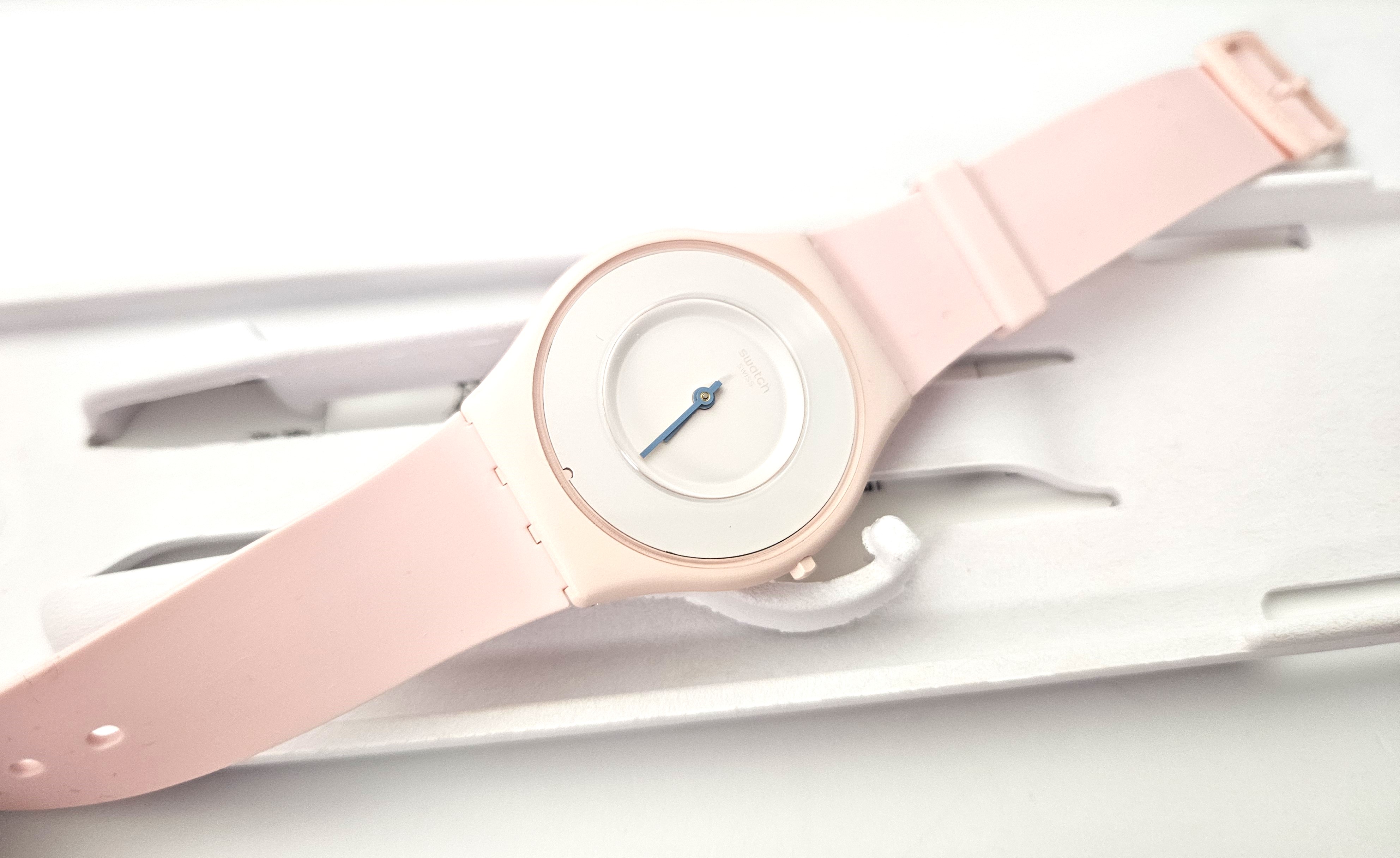 Swatch Skin 2023 - SS09P100 - Caricia Rosa (diametro cassa 34,0 mm) - Nuovo - perfettamente funzionante - Display Analogico - Resistente all'acqua fino a 3 bar - Tipo di movimento Quarzo Svizzero - completo di scatola originale e garanzia - cassa in bioceramica -