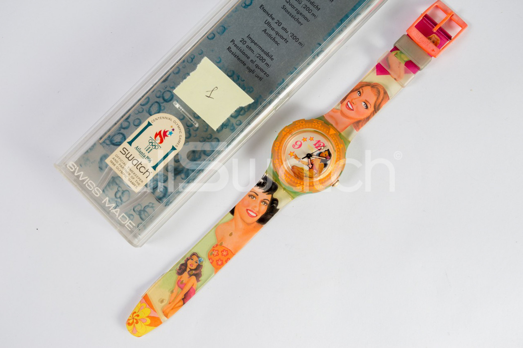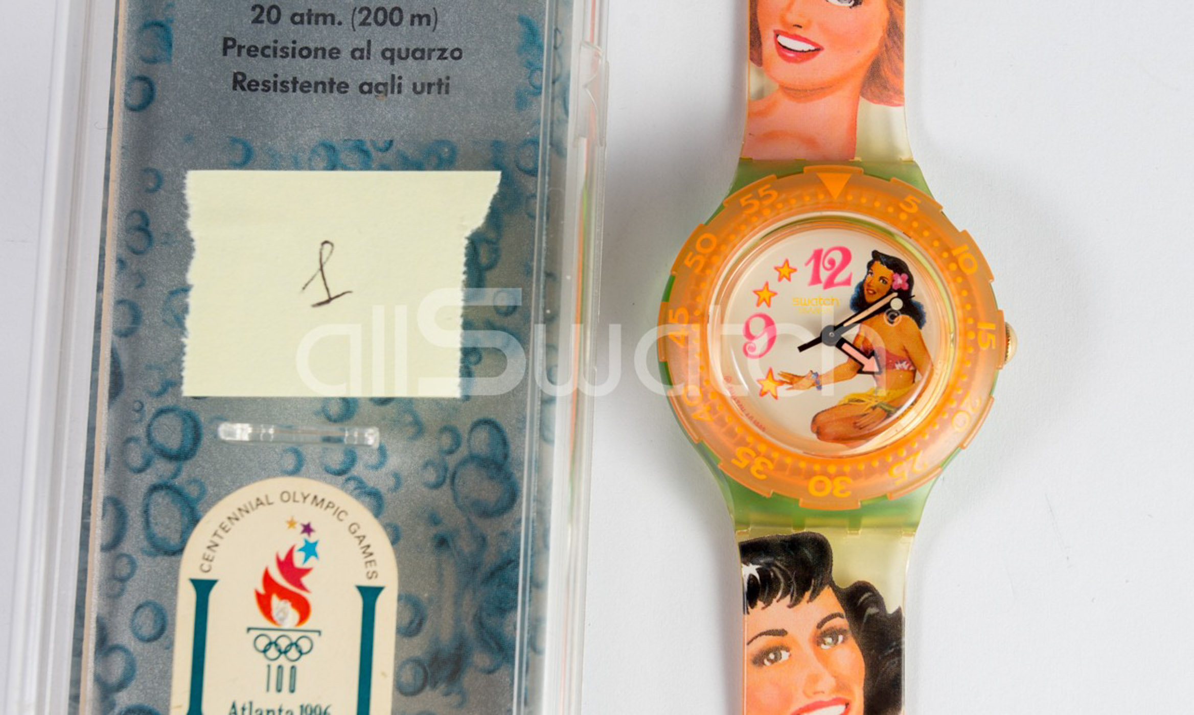 Swatch Scuba 1994 - SDG104 - Beach Virgin con Ghiera Color Arancio - NUOVO - perfettamente funzionante nella sua custodia originale - Display analogico - Resistente all'acqua fino a 20 bar - Tipo di movimento Quarzo Svizzero