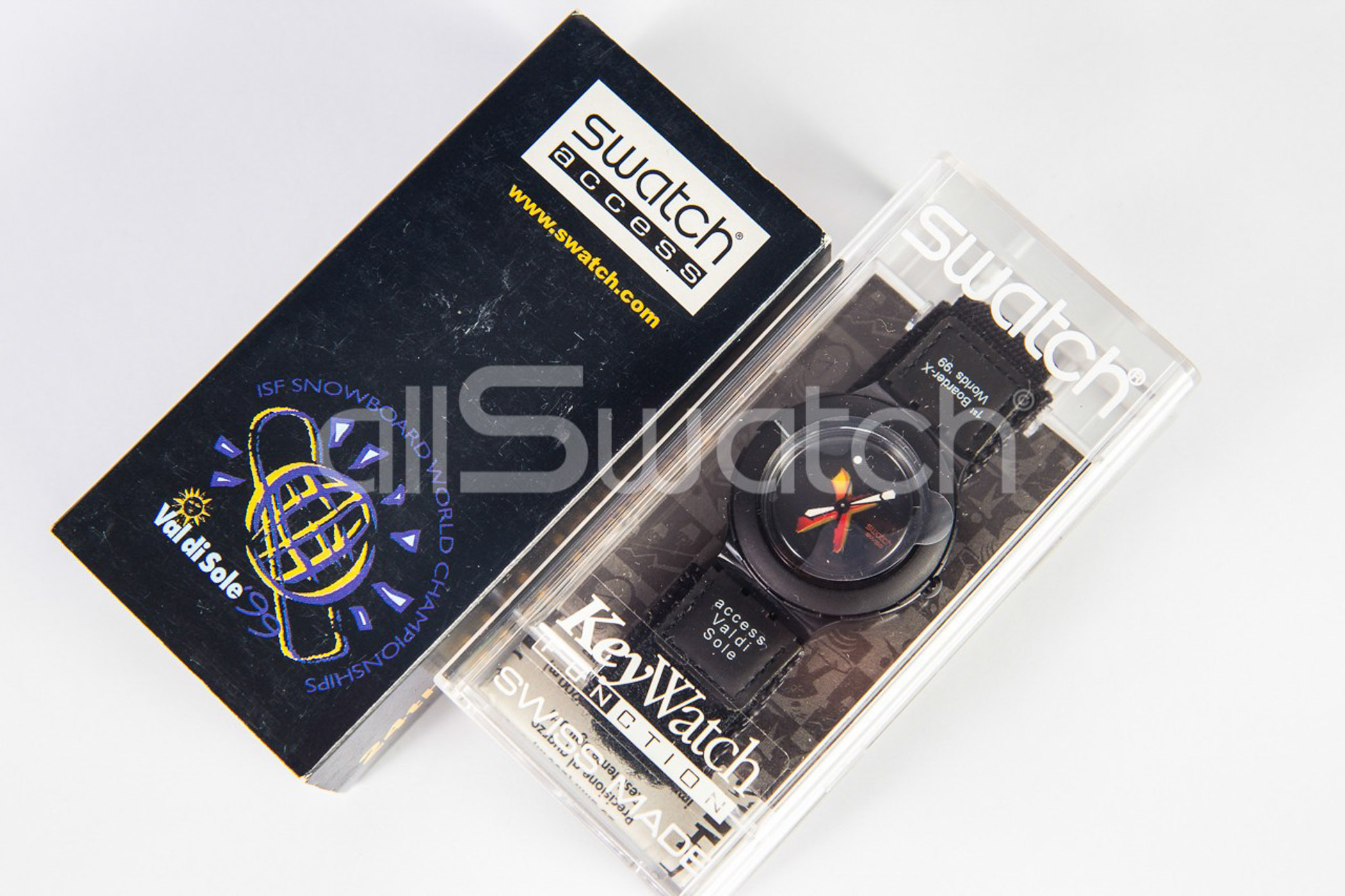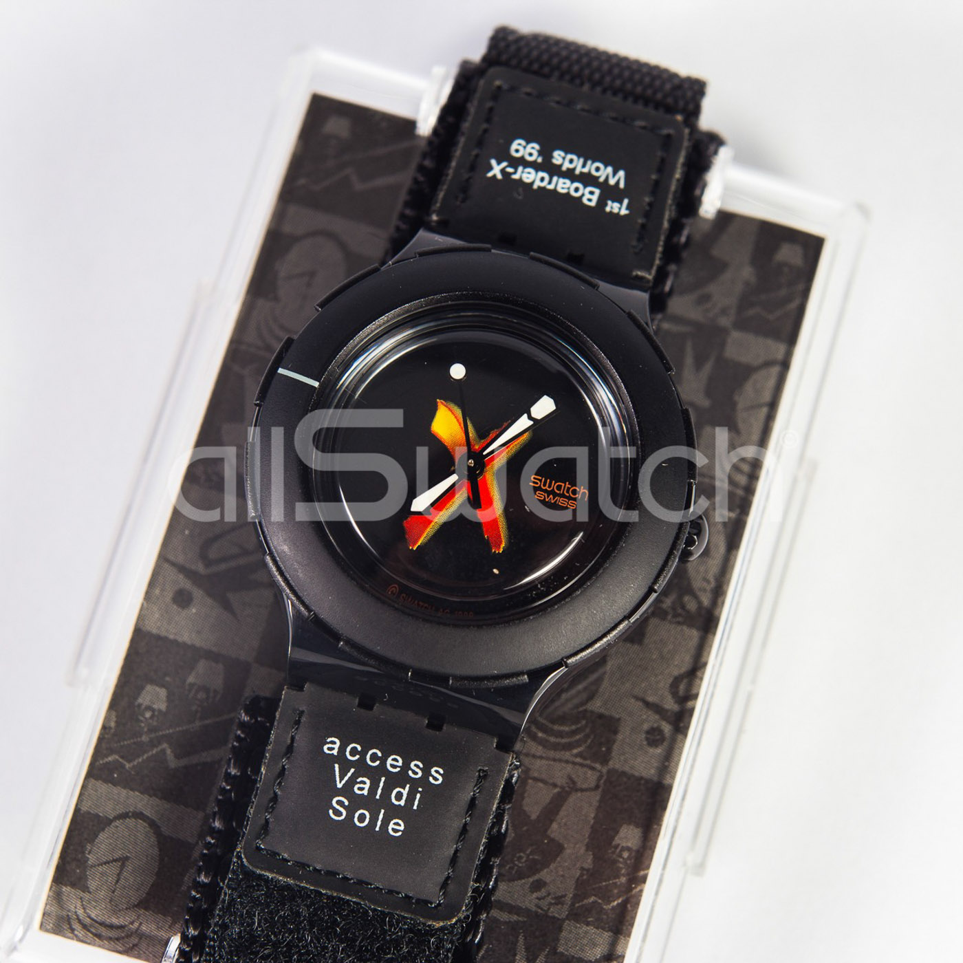 Swatch Special 1999 - SHB103PACK - Val Di Sole Boarder X - NUOVO - perfettamente funzionante nella sua custodia originale - Display analogico - Resistente all'acqua fino a 3 bar - Tipo di movimento Quarzo Svizzero - Cassa in Plastica -
