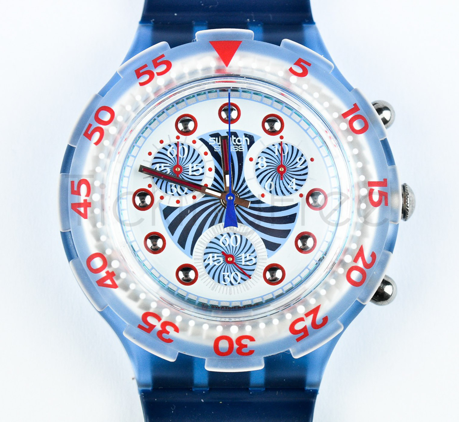 Swatch Aquachrono 1996 - SBN104 - Waterwhirl - NUOVO - perfettamente funzionante nella sua custodia originale - Display Cronografo - Resistente all'acqua fino a 20 bar - Tipo di movimento quarzo svizzero